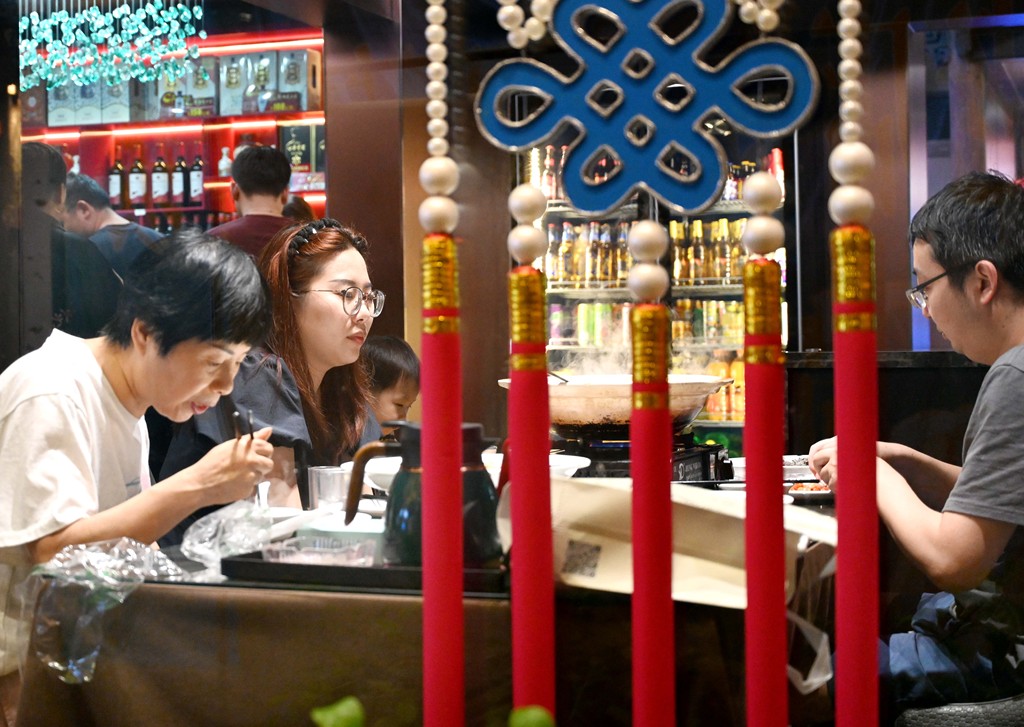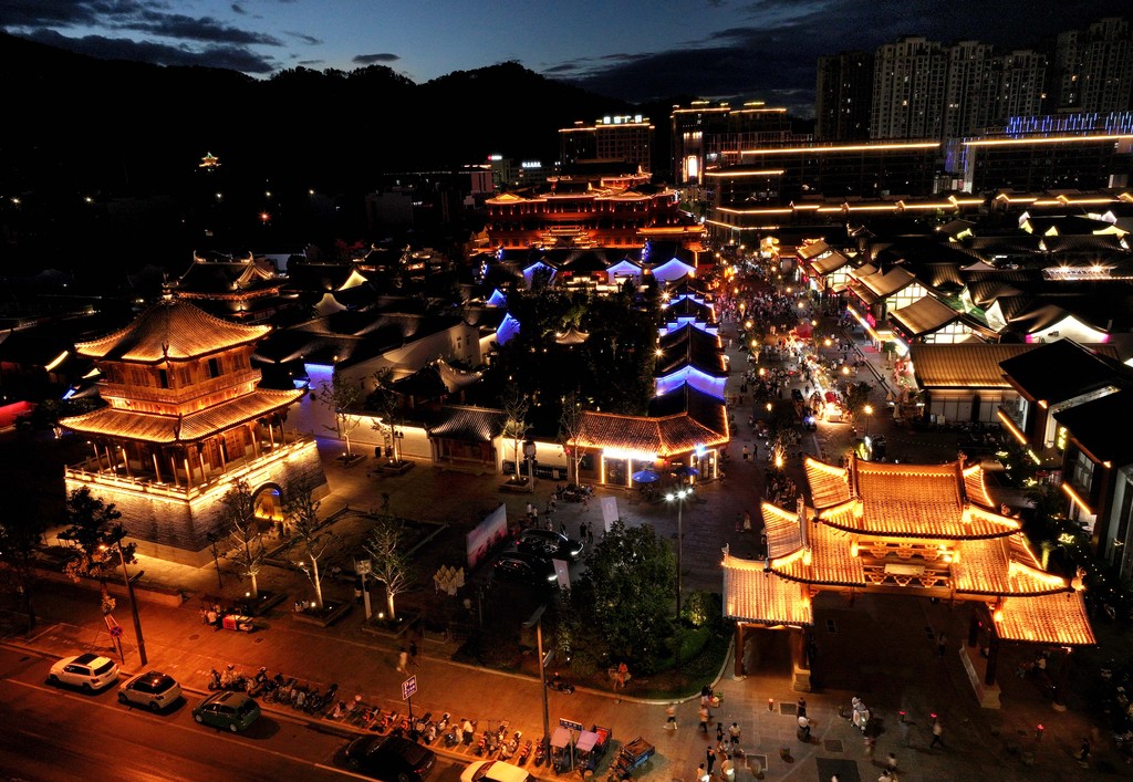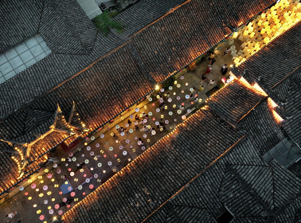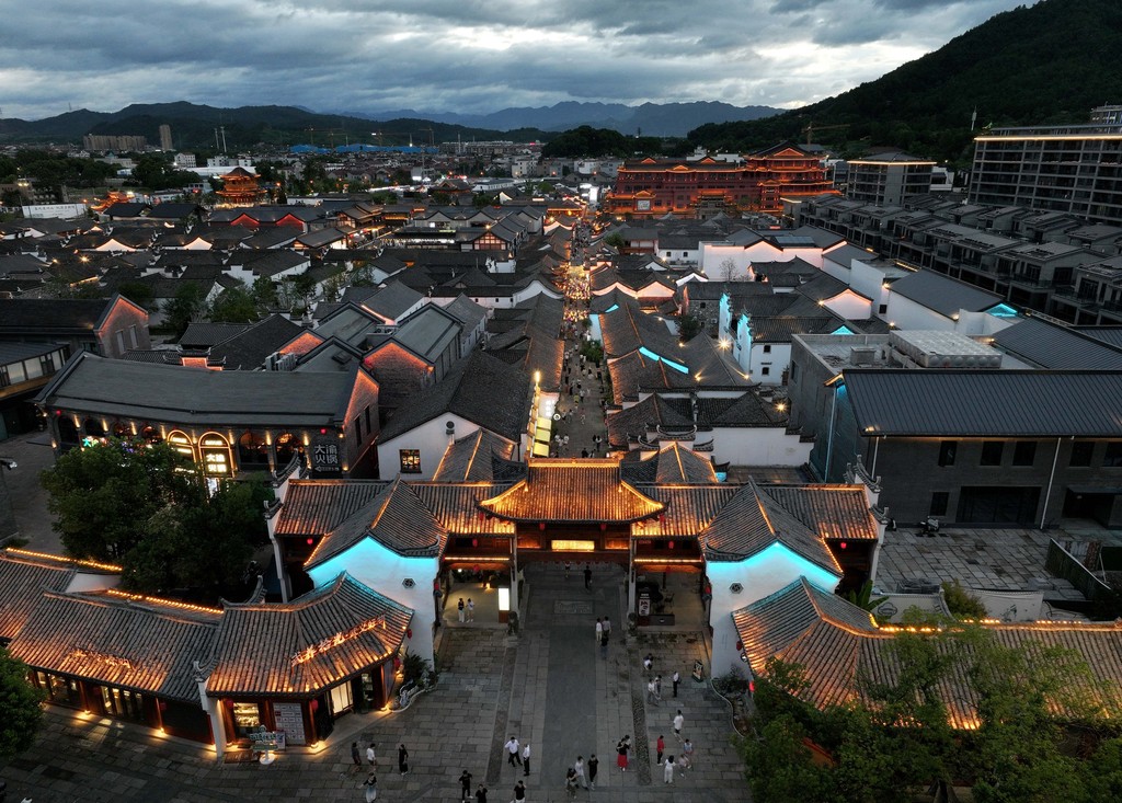 A night market at an ancient town in Jinhua City, Zhejiang Province was thronging with visitors on the evening of Sunday. The recent high temperatures in Jinhua saw people flock to the night market to enjoy the cool evening air. Residents and tourists gathered around the stalls to try local delicacies, sip cold drinks, and shop for various items.