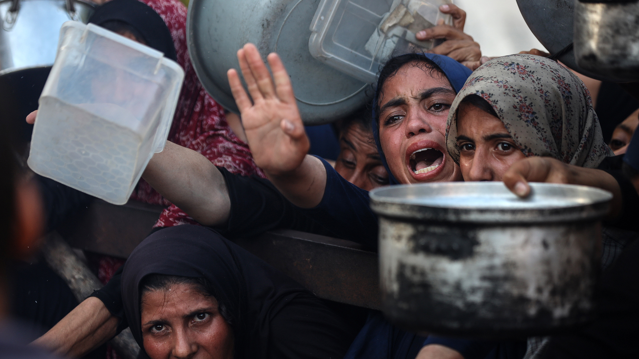 Palestinians gather at a food distribution point in Gaza, July 20, 2025. /VCG