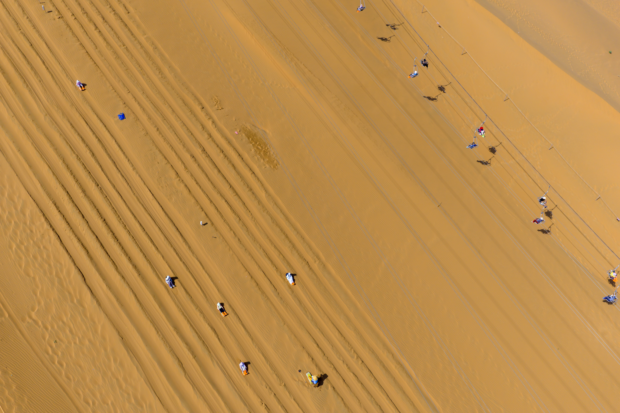 In the height of summer, tourists are flocking to Shapotou Scenic Area in Zhongwei, northwest China's Ningxia, to experience one of China's most exhilarating desert sports: sandboarding. Located on the southeastern edge of the Tengger Desert, sunlight bathes the golden dunes as long trails of sand trace the thrilling descent of riders sliding down slopes over 80 meters high, turning the tranquil desert into a playground of speed and excitement.