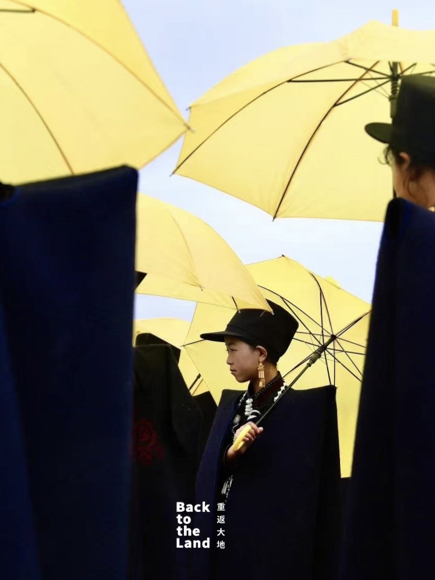 In Yi culture, yellow stands for sunlight, hope and life. The yellow umbrella reflects a deep ancestral worship of the sun, blending beauty, belief and identity in a single iconic image.