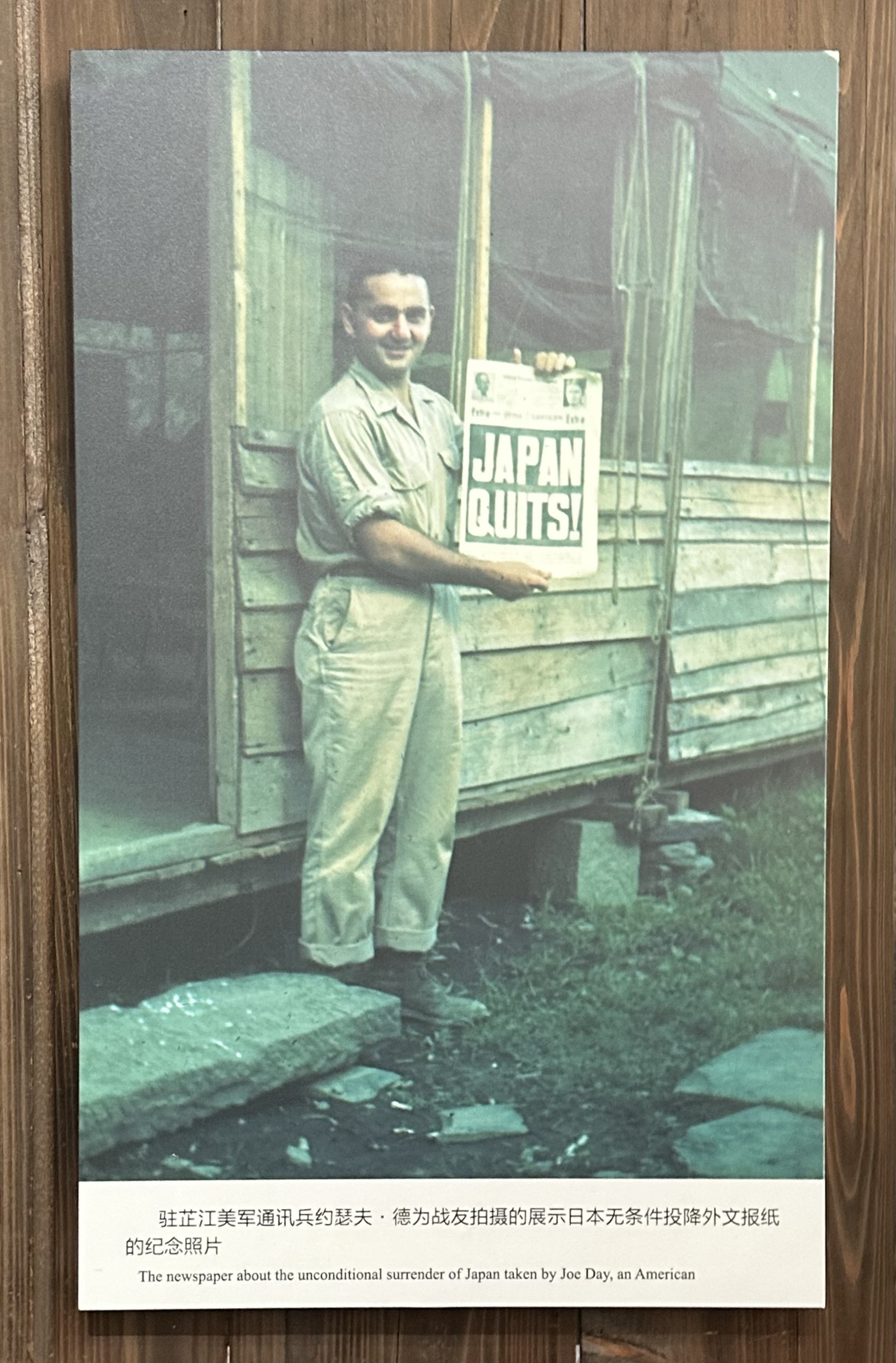 A color photo on display at the museum, taken by signalman Joe Day, shows a fellow soldier displaying foreign newspapers announcing Japan's unconditional surrender in the war. This photograph of the exhibit was taken on July 25, 2025. /CGTN