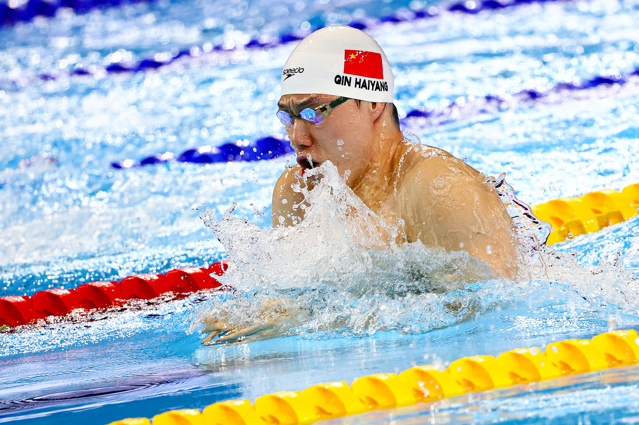 Qin Haiyang of China competes in the men's 100-meter breaststroke final at the World Aquatics Championships in Singapore, July 28, 2025. /VCG