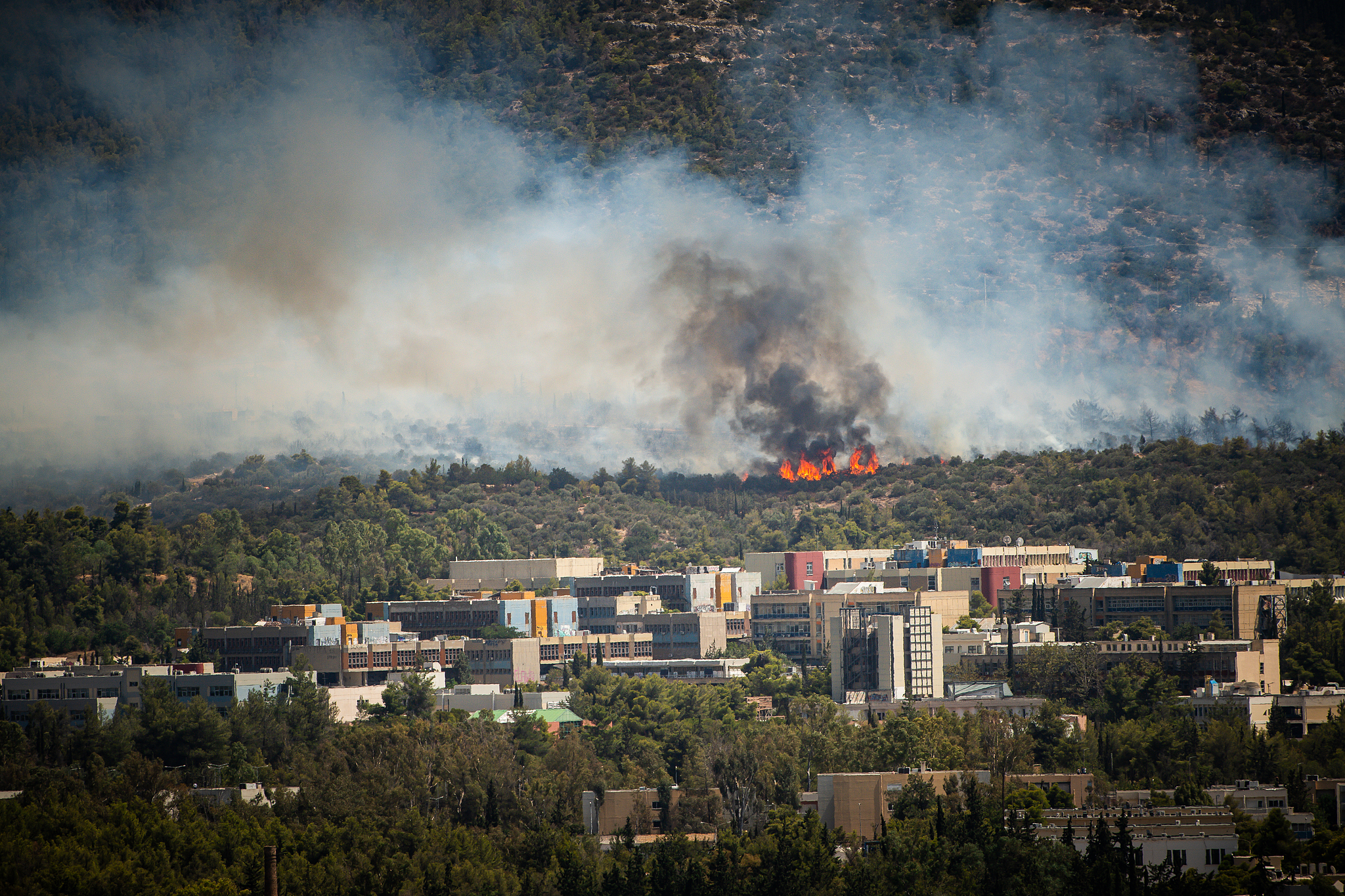 A wildfire threatens the Polytechnic Campus of National Technical University of Athens, Greece, July 28, 2025. /VCG