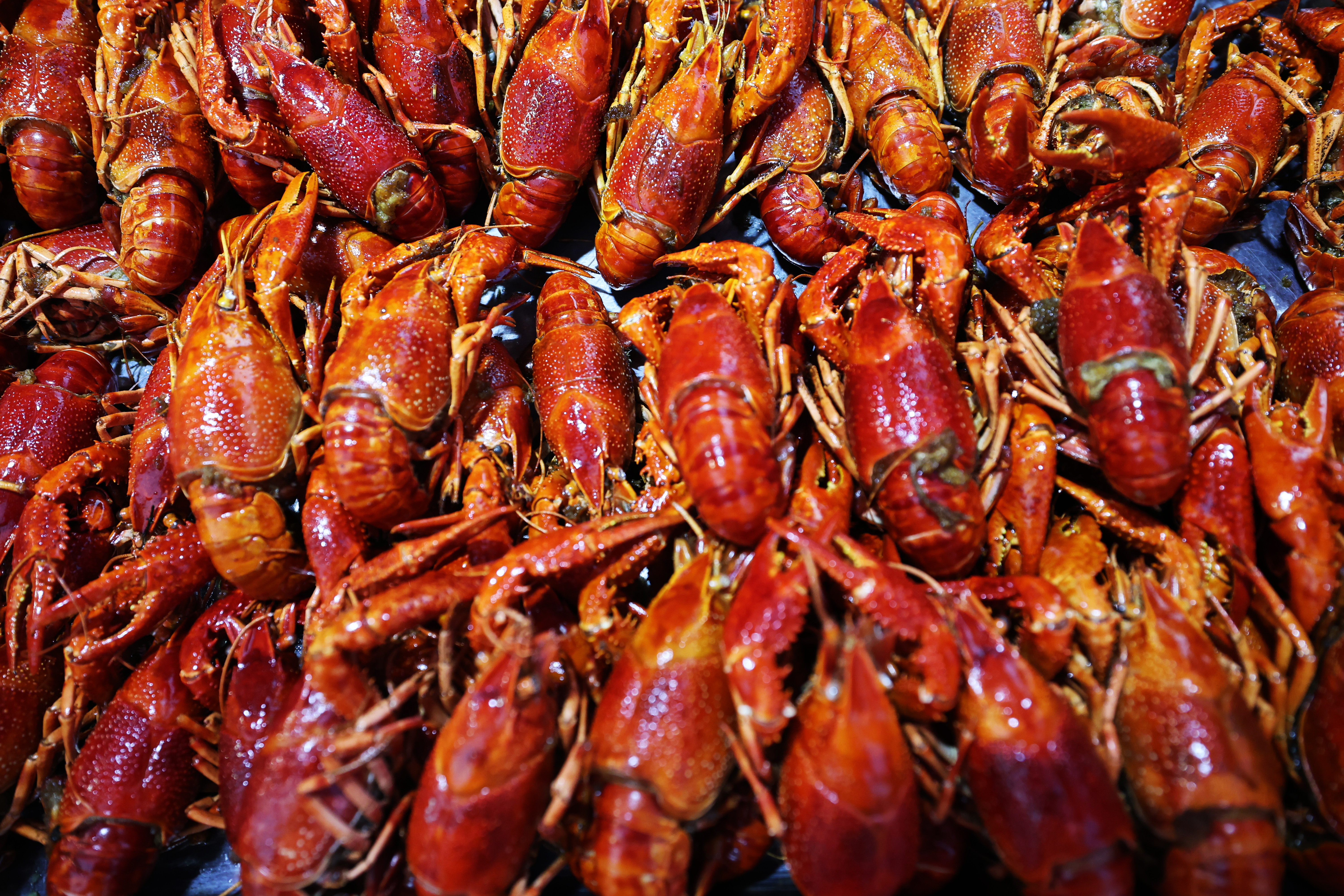 A platter of crayfish is set out for visitors to the food festival in Wuhu, Anhui Province on July 26, 2025. /IC