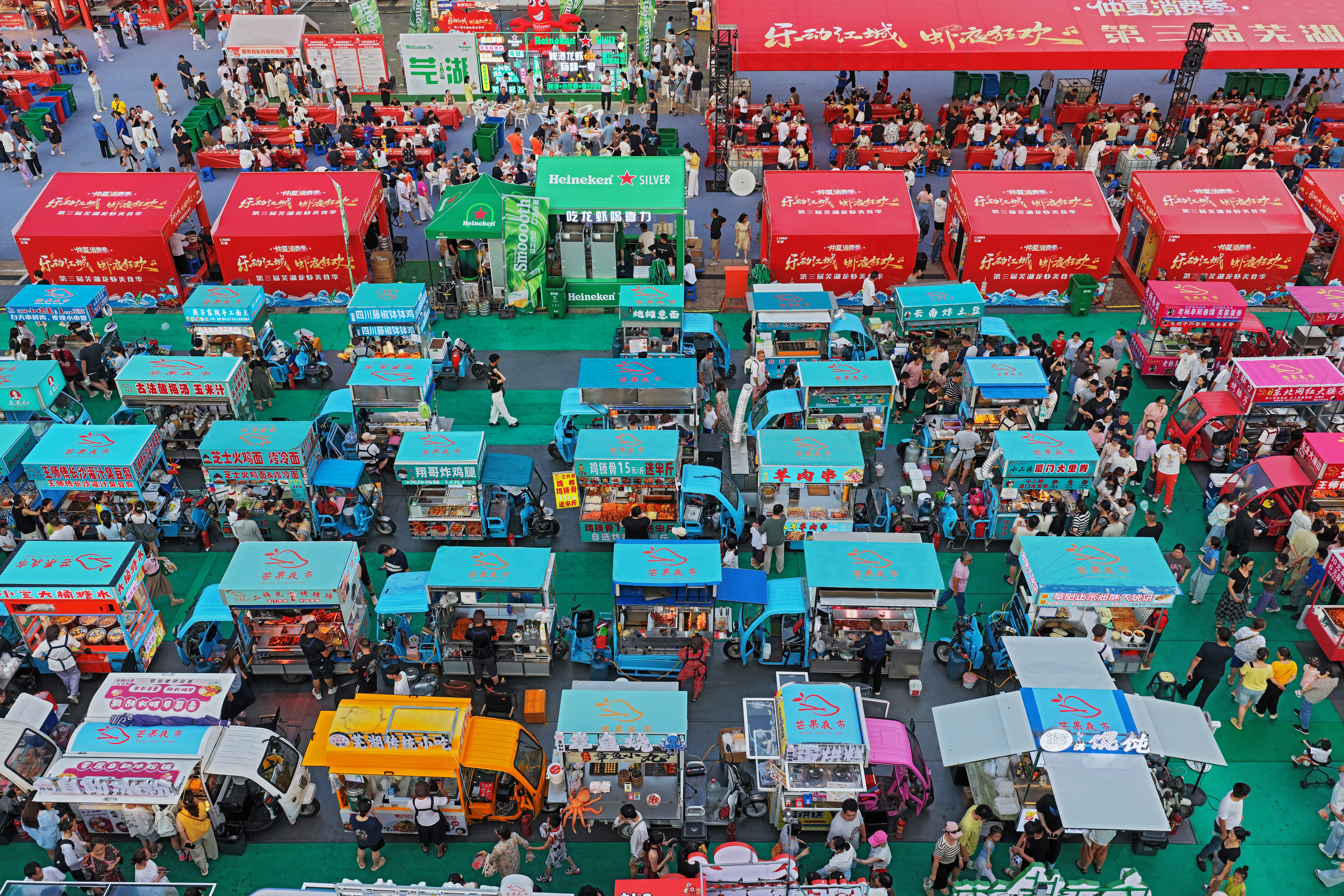 Visitors stroll through gourmet stalls at the crayfish food festival in Wuhu, Anhui Province, on July 26, 2025. /IC
