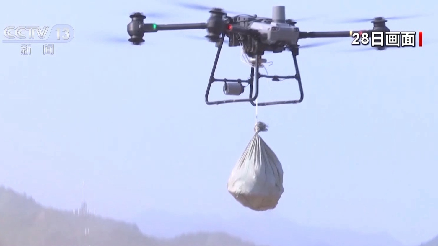 Each rescue drone can carry 30 kilograms of supplies at a speed of 15 meters per second for over 20 minutes, Wang Zining, a rescue member, told China Media Group.