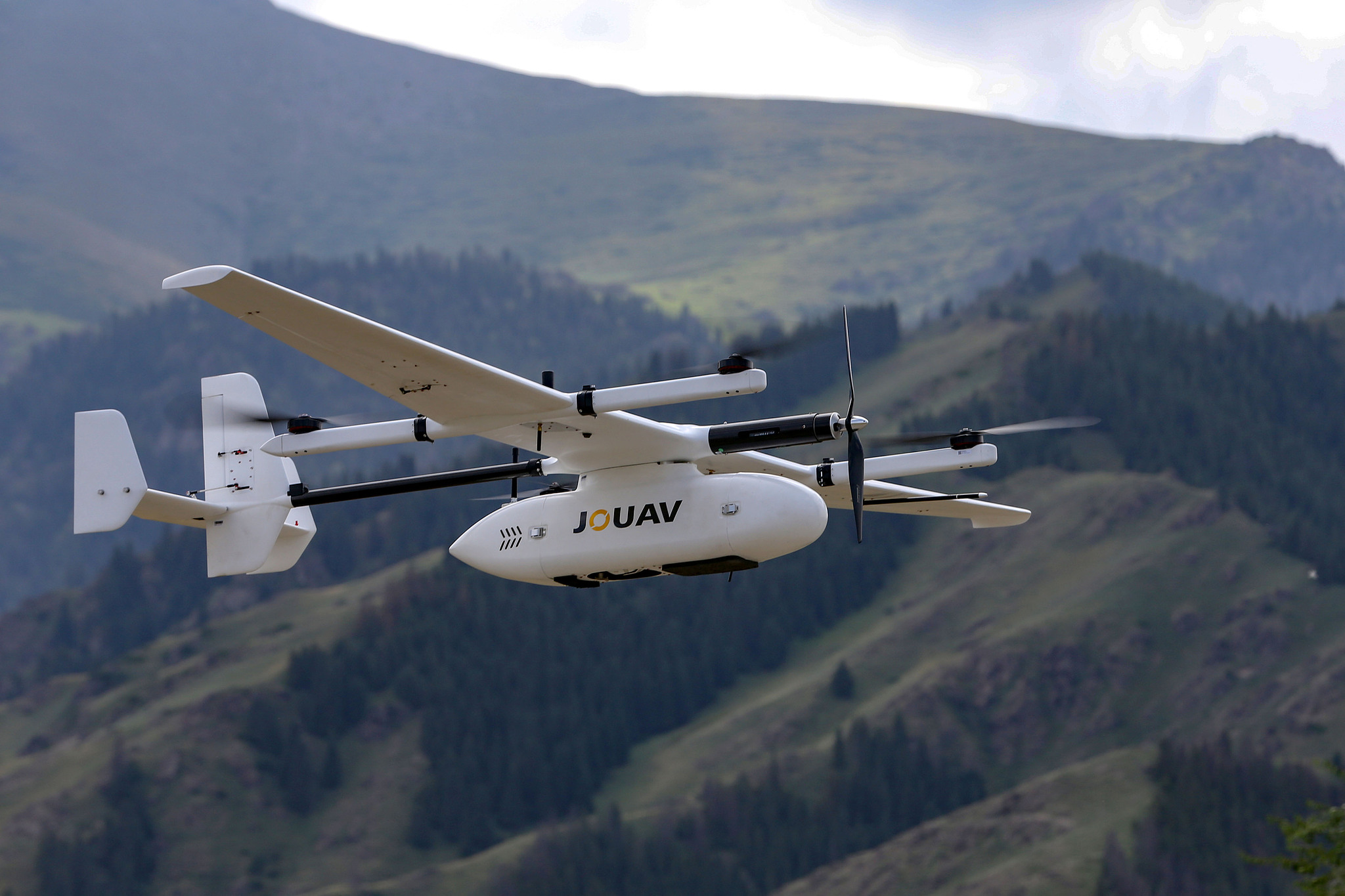 A drone carries out a patrol mission in Changji Hui Autonomous Prefecture, Xinjiang Uygur Autonomous Region, northwest China, August 4, 2024. /VCG