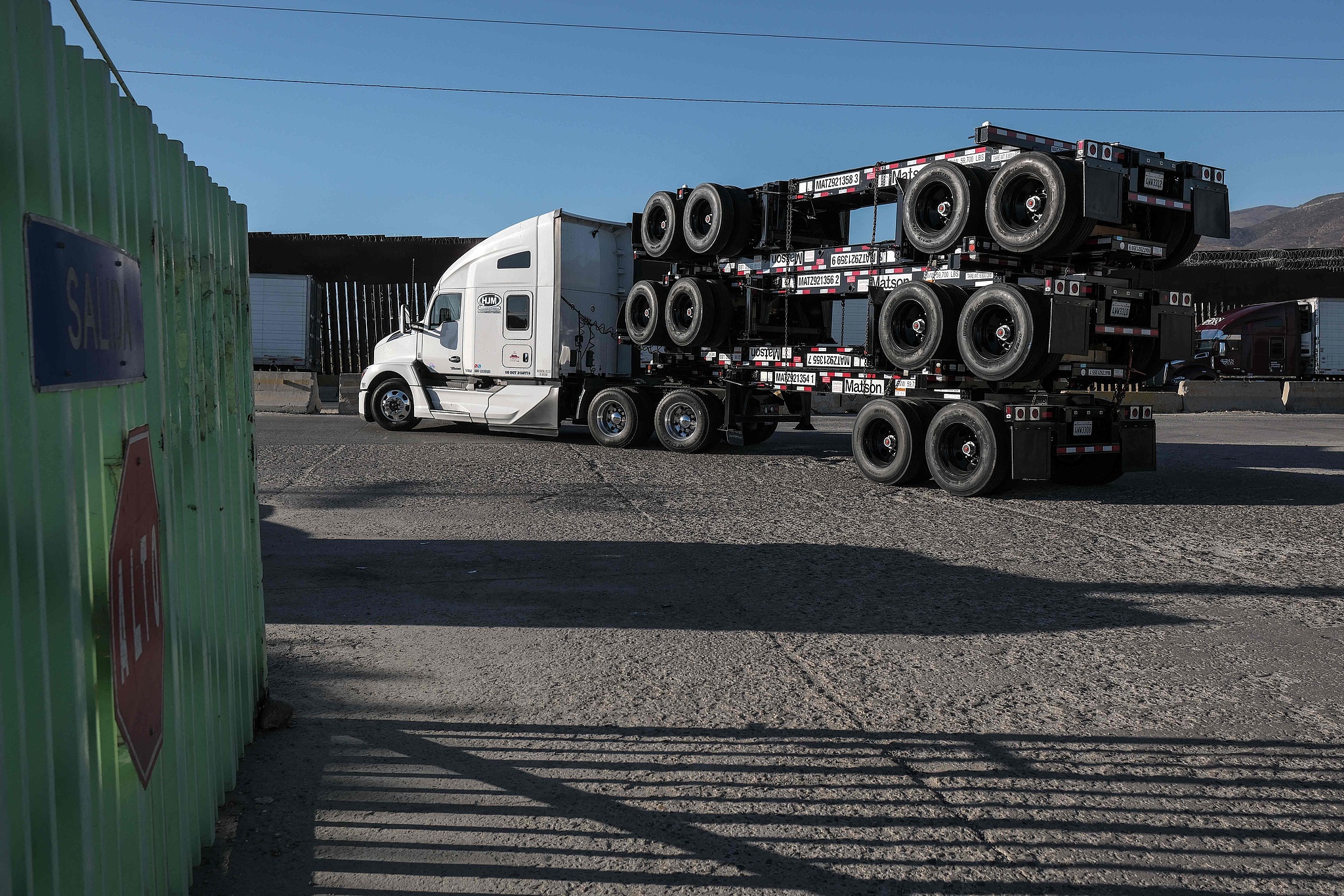 A cargo truck drives next to the border wall before crossing to the US at Otay commercial port in Tijuana, Baja California state, Mexico, on July 31, 2025. /VCG