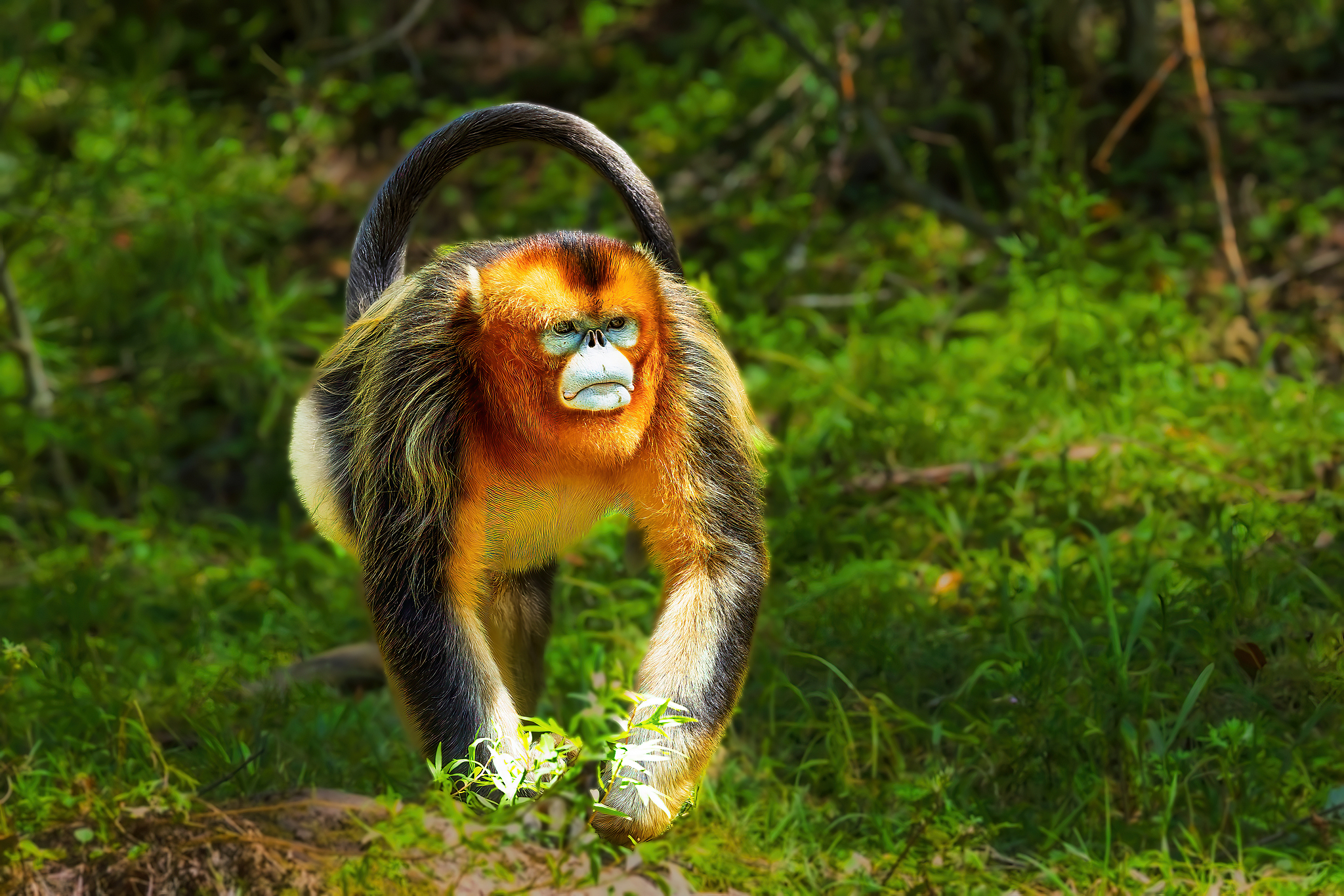 A golden snub-nosed mokey in Shennongjia National Park, Shiyan, Hubei Province, central China, July 20, 2025. /VCG