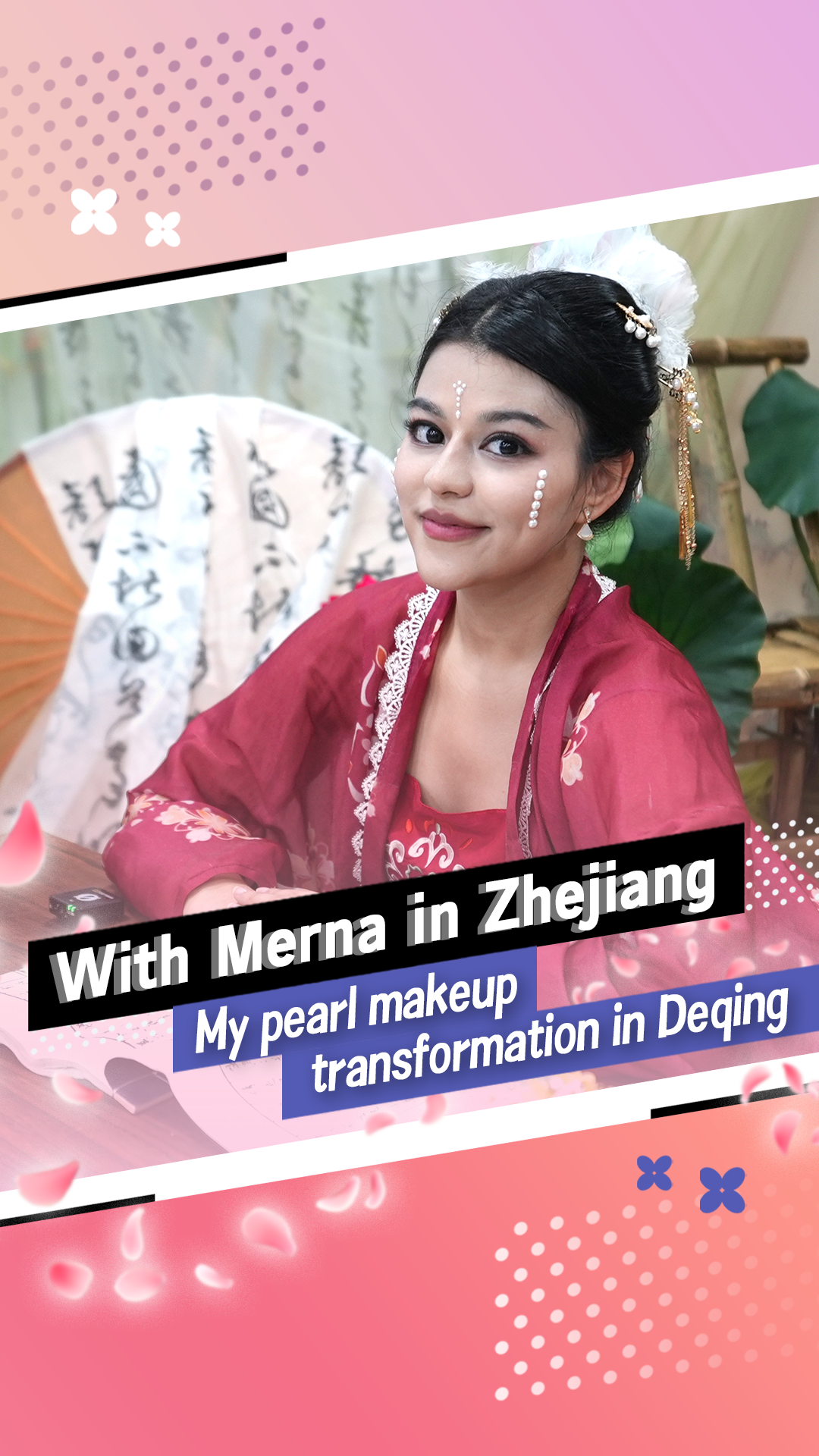 In eastern China's Zhejiang Province, the Yuguan Pearl Makeup recreates the elegance often seen in historical Chinese dramas. In Deqing's Xinshi Ancient Town, delicate pearls shimmer against the cheeks, and a feather-and-silk-flower crown symbolizes the silkworm's transformation. Every detail reflects the area's thousand-year silk-making heritage, carrying the grace of Jiangnan beauty into the present day.