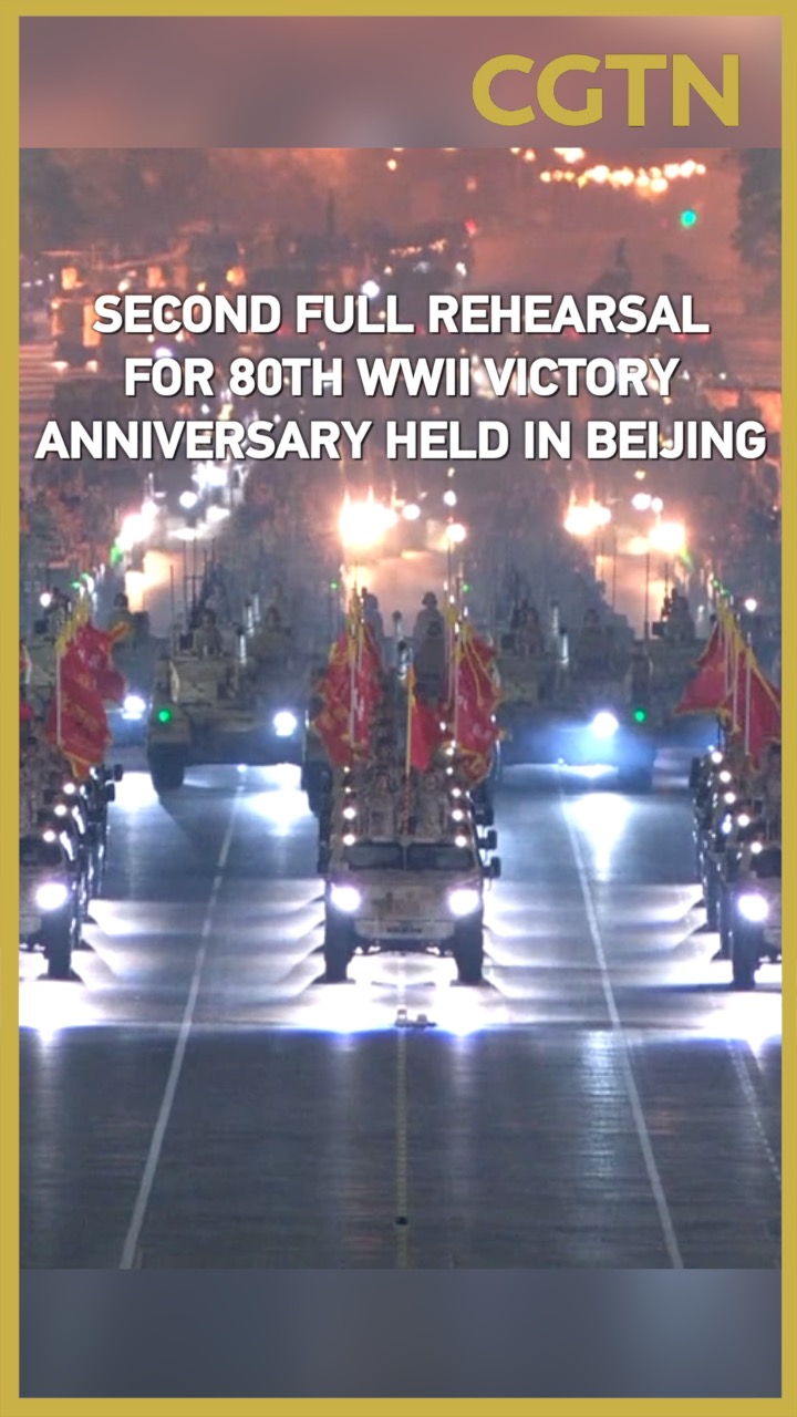 The second full rehearsal for the 80th anniversary of the victory in the Chinese People's War of Resistance Against Japanese Aggression and the World Anti-Fascist War took place at Tiananmen Square in Beijing from 5:30 p.m. on August 16 to 3:30 a.m. on August 17.