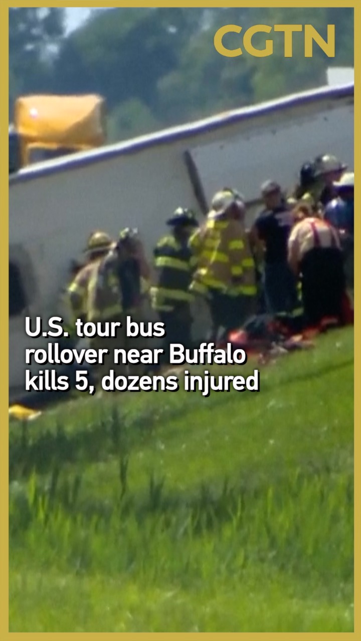 A tour bus traveling from Niagara Falls to New York City rolled over on I-90 near Pembroke, New York, killing five people and injuring many others. State police said 54 people were on board. Erie County Medical Center received 24 patients, while the University of Rochester Medical Center treated six, two of whom were critical. Two more patients at United Memorial Medical Center were treated and released. Authorities said most passengers were Indian, Chinese and Filipino nationals. The cause of the accident remains under investigation, with mechanical failure and impairment being ruled out, according to officials.