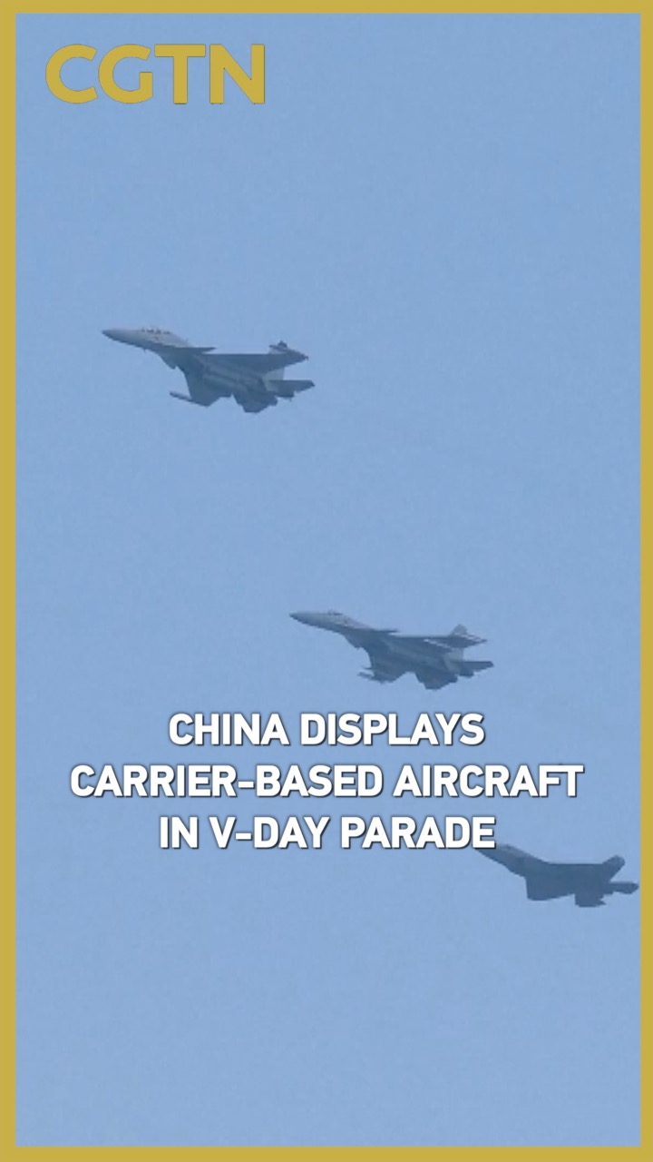 The Carrier-based Aircraft Echelon comprised two V-formations of J-15DH, J-15DT, J-35 and J-15T carrier-based aircraft. From ski-jump takeoff to catapult takeoff, the formations show that China's carrier-based aircraft have undergone a leapfrog development.