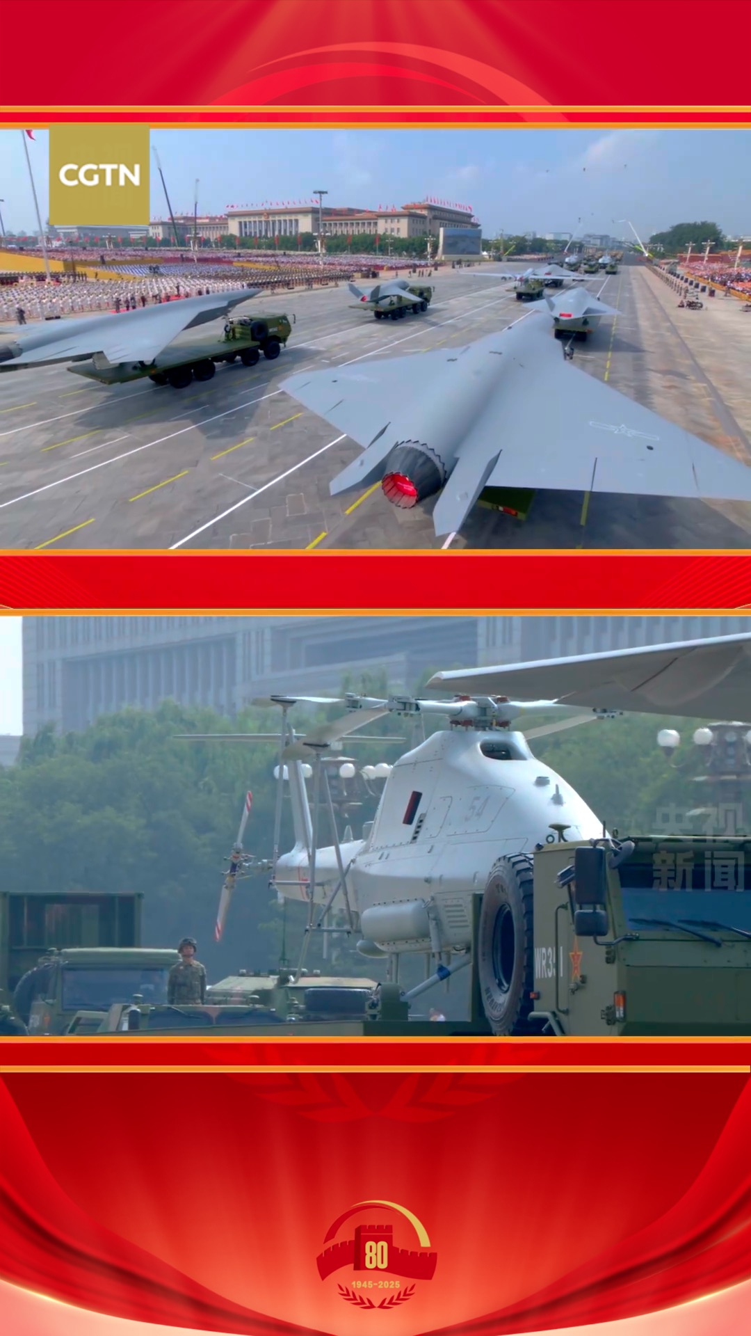 Check out the unmanned aerial combat weapons displayed during China's Victory Day celebrations in Beijing on September 3. The showcase included reconnaissance-and-strike drones, unmanned wing planes, unmanned air-dominance planes, and unmanned aircraft carrier-borne helicopters. The advanced weapons can cover a wide range of space, automatically coordinate with one another, and attack in a way that is difficult to detect, creating a new model for future-oriented aerial combat scenarios.