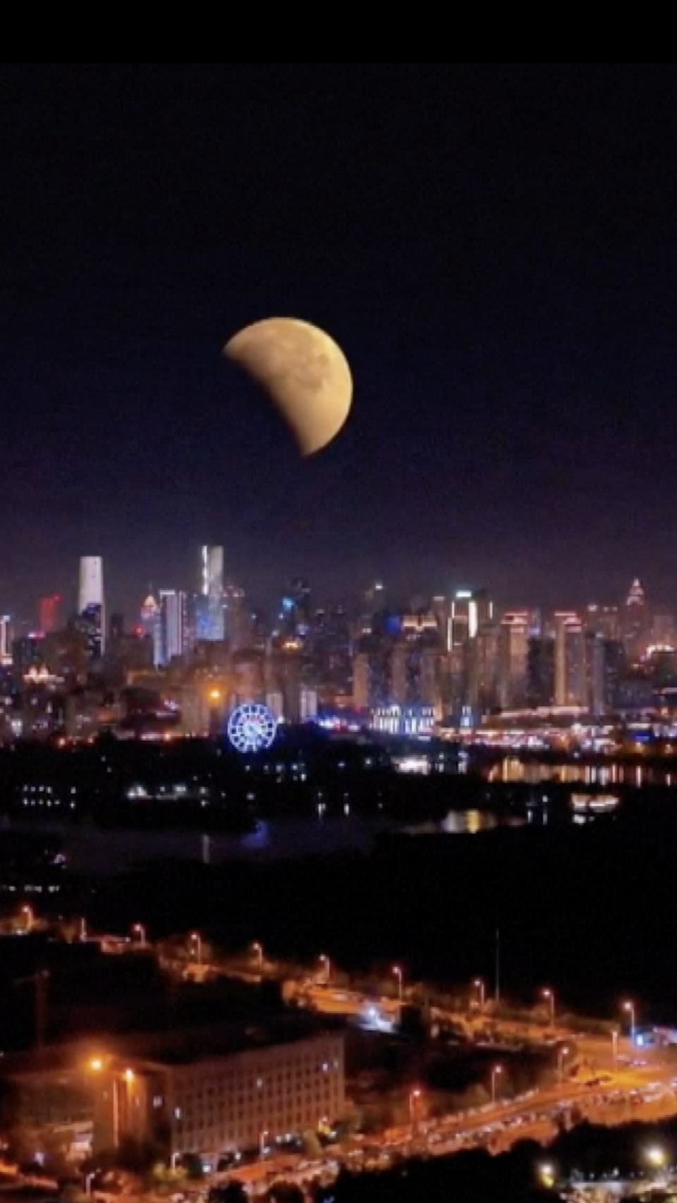 For the first time in nearly three years, people across China looked up in awe as the moon turned a rare crimson red early Monday morning. The total lunar eclipse, which lasted more than an hour, occurred when the sun, Earth, and moon were aligned, plunging the moon fully into the umbra. With the right weather conditions, the "red moon" could be observed with the naked eye.