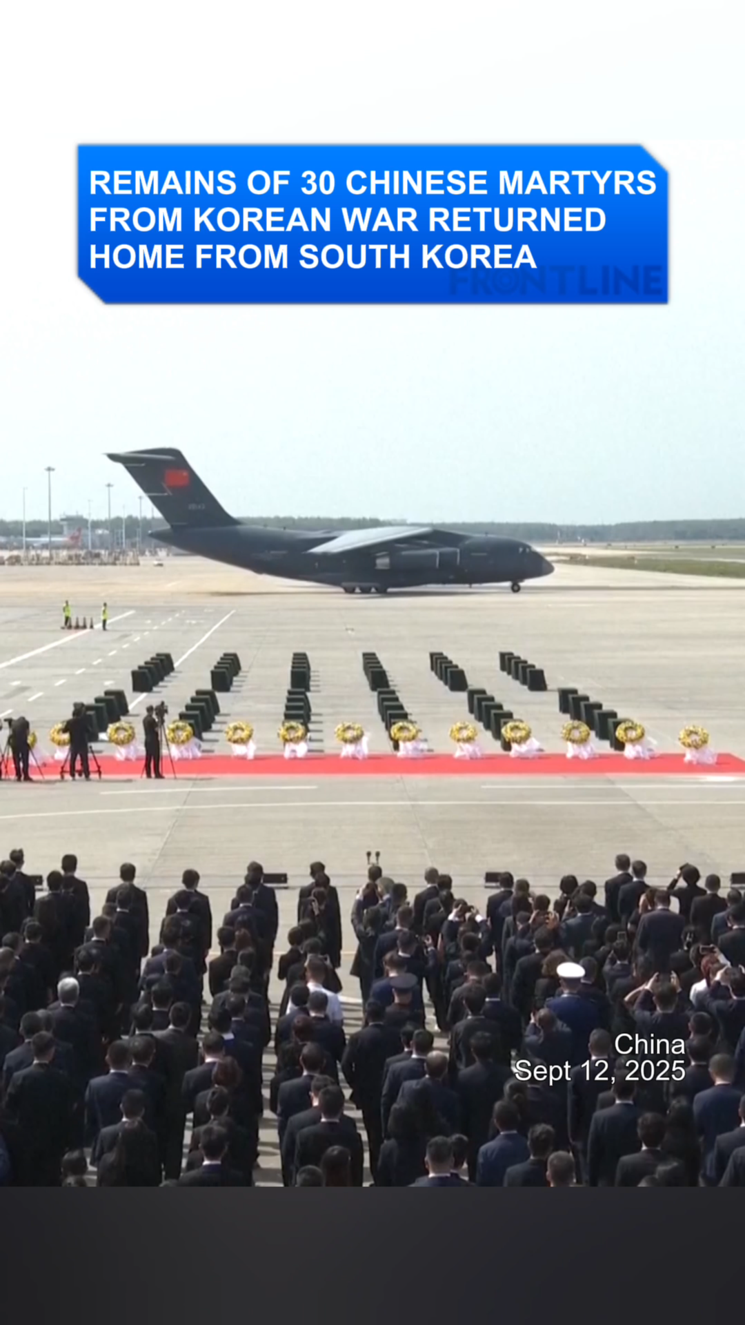 On September 12, the remains of 30 Chinese People's Volunteers (CPV) soldiers who lost their lives during the War to Resist U.S. Aggression and Aid Korea (1950-1953) were returned to China from South Korea. Since 2014, China and South Korea have jointly conducted the handover of CPV martyrs' remains for 12 consecutive years, returning a total of 1,011 Chinese soldiers to their motherland.
