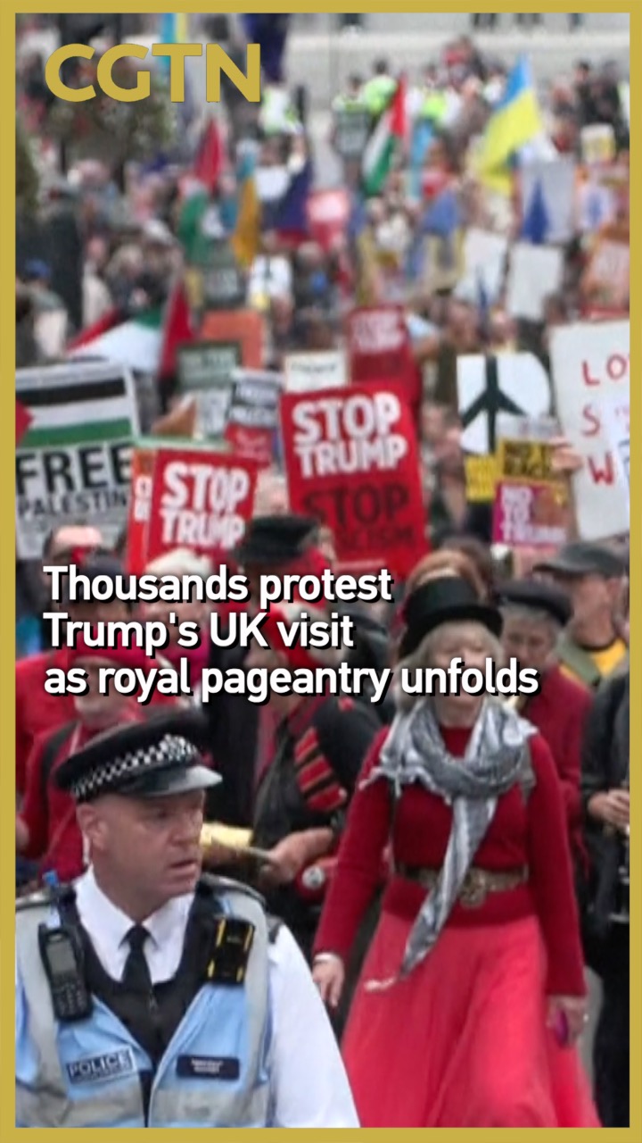 About 5,000 people marched through central London on Wednesday to protest U.S. President Donald Trump's state visit to the UK and his administration's policies. Meanwhile, Trump was welcomed in Windsor, taking part in a carriage procession and state banquet hosted by King Charles III. The visit has sparked controversy and raised questions about the UK's decision to invite him amid widespread opposition.