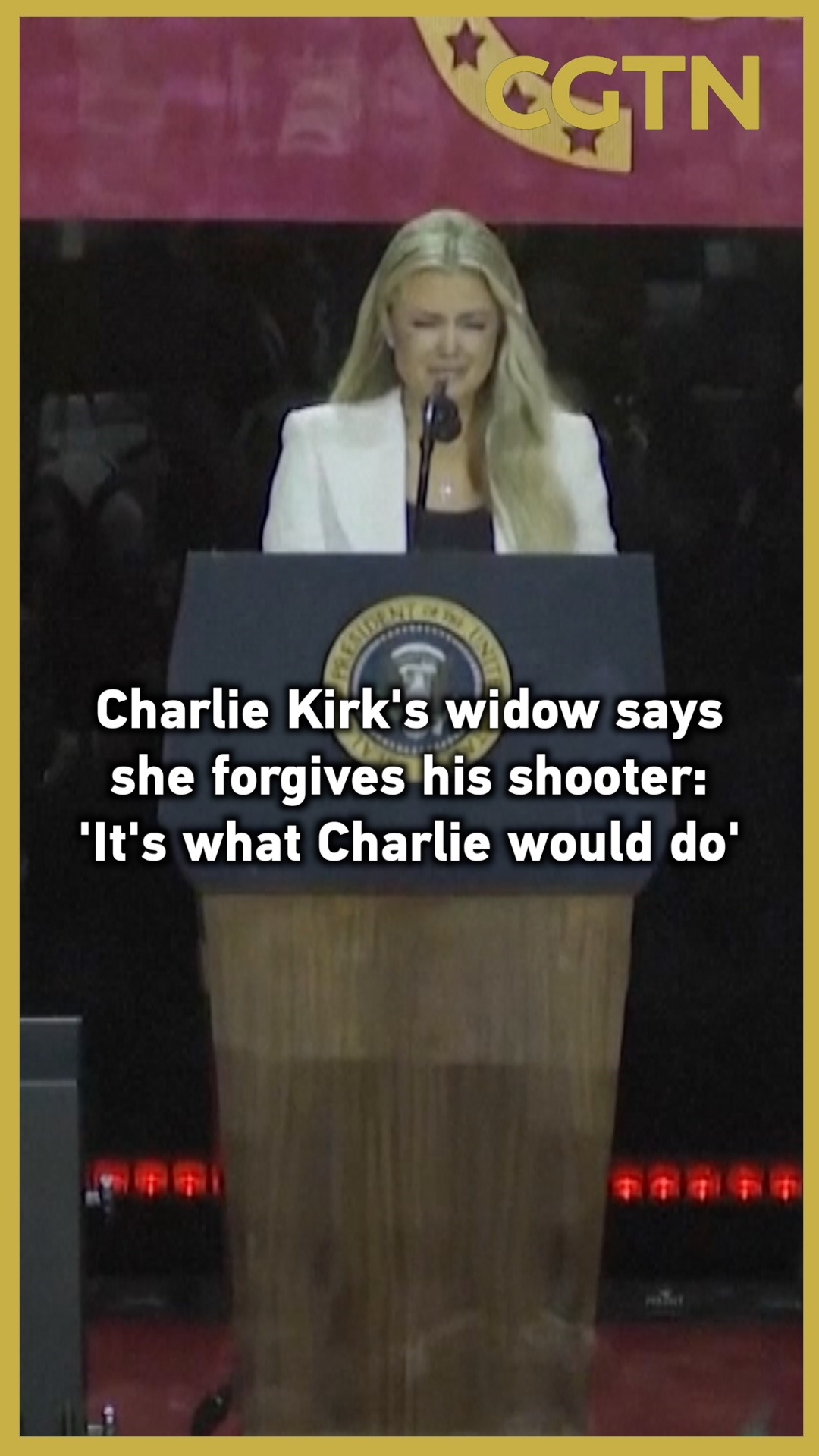 In her address, Charlie Kirk's widow, Erika, said that amid her grief she found comfort in knowing her husband left this world without regrets. She also said she forgives the man charged with killing him.