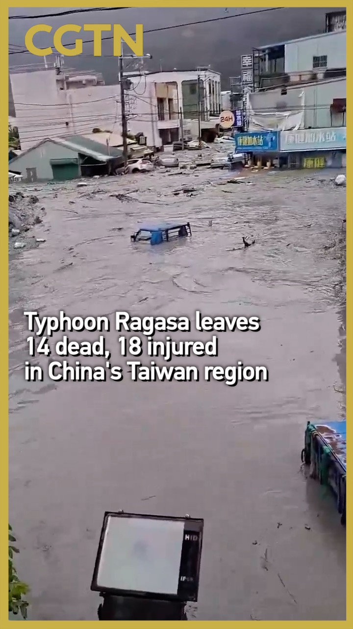 Super Typhoon Ragasa has caused significant casualties and damage in China's Taiwan region. As of Wednesday, the region's disaster response center reported at least 14 fatalities, 18 injuries and several people still missing. The storm triggered heavy rains, leading to a devastating breach of the Mataian Creek barrier lake in Hualien. The resulting floodwaters destroyed a bridge and inundated Guangfu Township, prompting the forced evacuation of approximately 1,800 households in the affected areas.