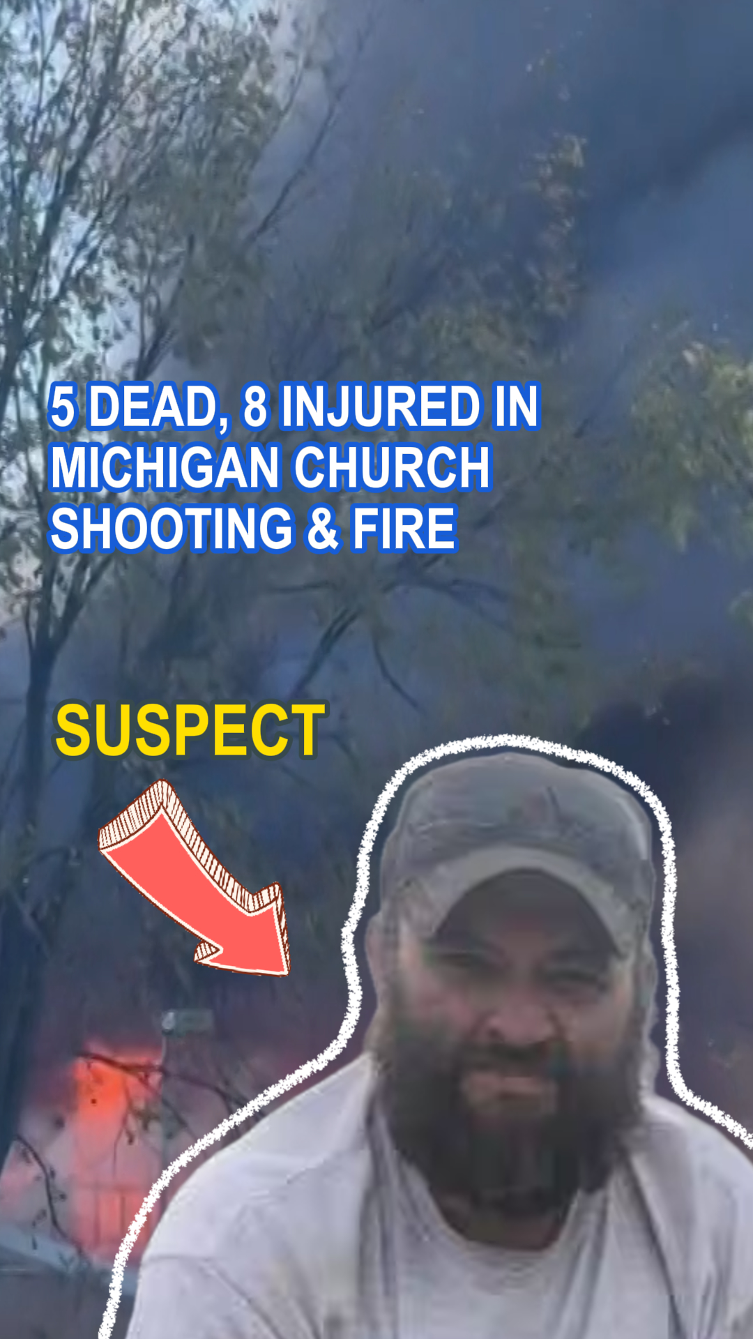 A gunman drove into a packed church in Grand Blanc Township, opened fire and set the building ablaze. At least five people are dead and eight wounded, while police warn more victims may be inside the ruins.