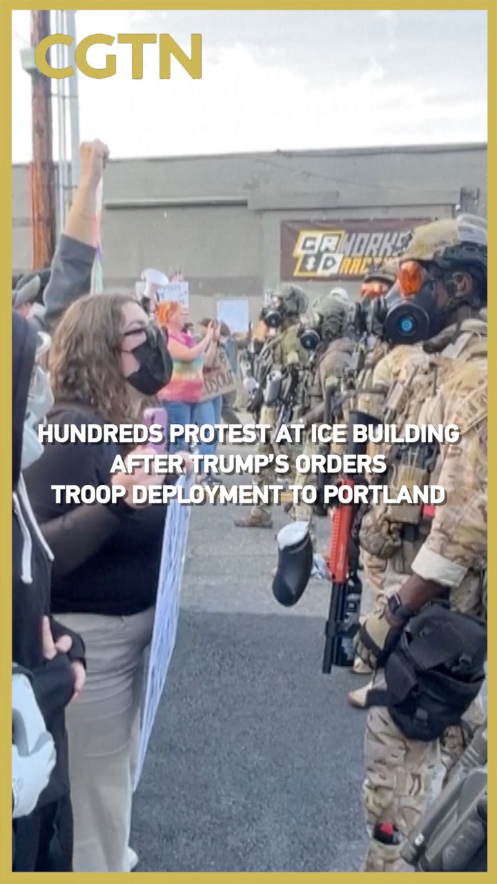 Several hundred people protested outside the U.S. Immigration and Customs Enforcement (ICE) building in Portland on Sunday, following President Donald Trump's announcement of the deployment of National Guard troops to the city. U.S. Defense Secretary Pete Hegseth ordered 200 Oregon National Guard members to be deployed under federal authority, while the state filed a lawsuit to challenge the move.