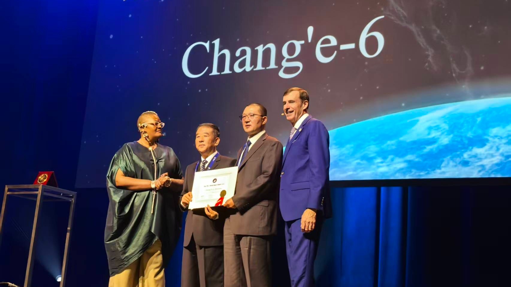 China's Chang'e-6 mission was presented the 2025 IAF World Space Award in the Team category in Sydney on Monday. This highest honor from the International Astronautical Federation acknowledges the mission's groundbreaking feat of bringing back samples from the Moon's far side. The mission captured the world's attention and secured wide acclaim due to its critical contributions. CGTN's reporter Chen Yilin spoke with the mission's chief designer and international experts to uncover the details.