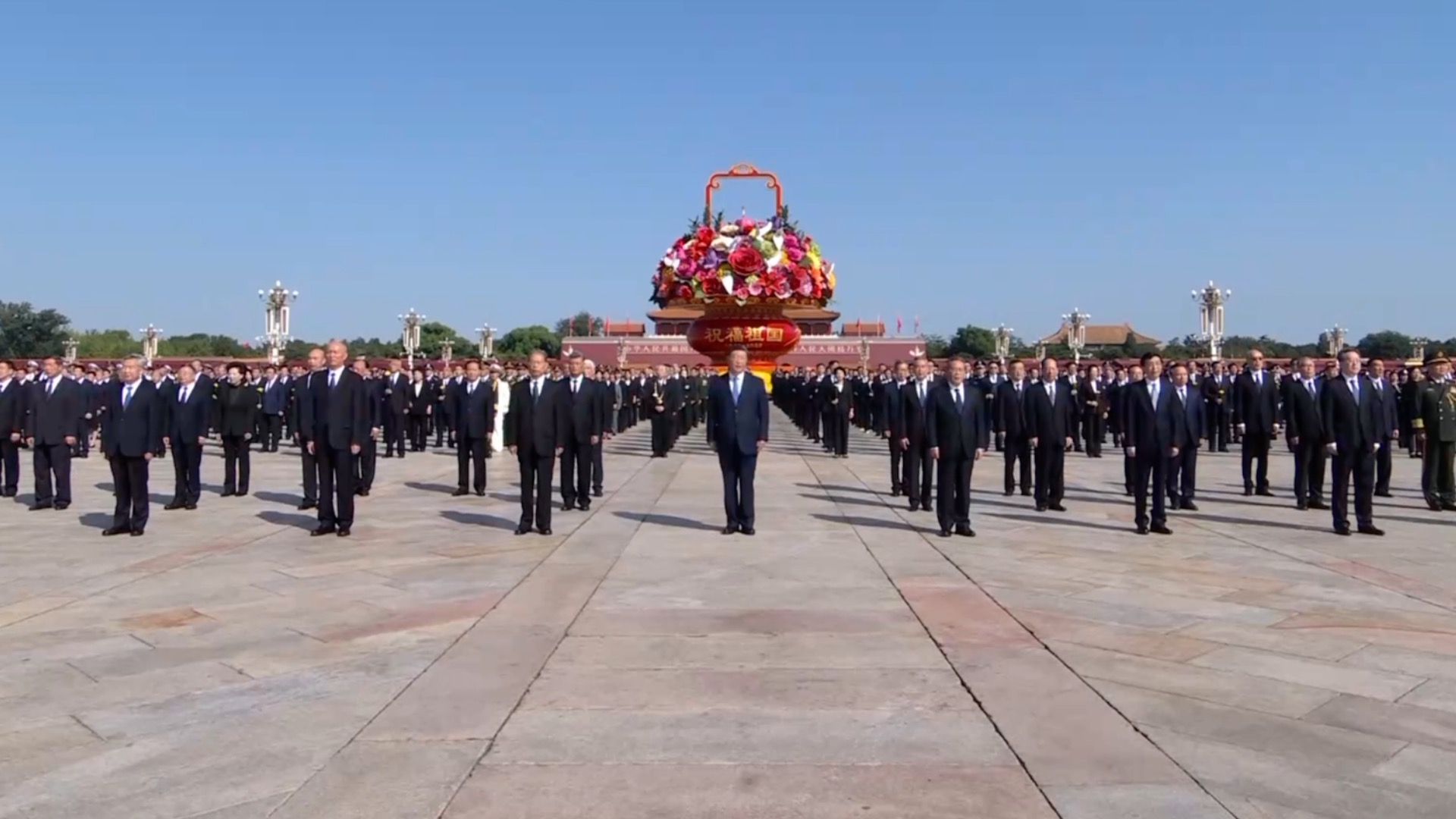 Chinese President Xi Jinping and other leaders of the Communist Party of China and the state sang the national anthem of the People's Republic of China at Tiananmen Square in Beijing on Martyrs' Day, which falls on September 30 each year.