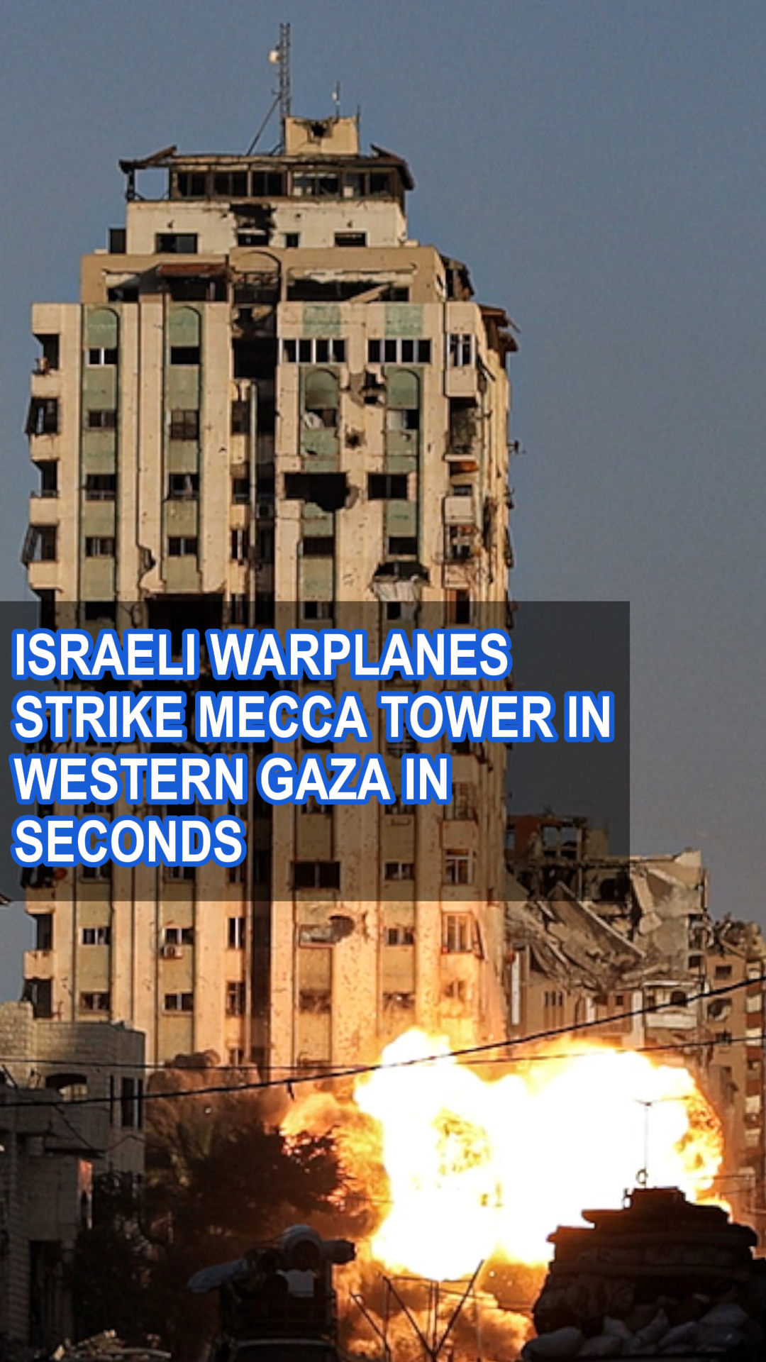 The Israeli army targeted a high-rise in Gaza City's western Rimal neighborhood, reducing it to rubble within seconds. The Mecca Tower, where hundreds of displaced Palestinians had taken shelter, was struck by missiles after a brief evacuation warning.