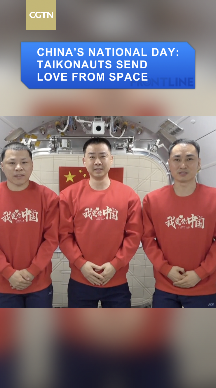 Celebrating China's National Day from orbit! Shenzhou-20 crew members Chen Dong, Chen Zhongrui and Wang Jie send festive greetings from the China Space Station. Do you like their holiday sweatshirts?