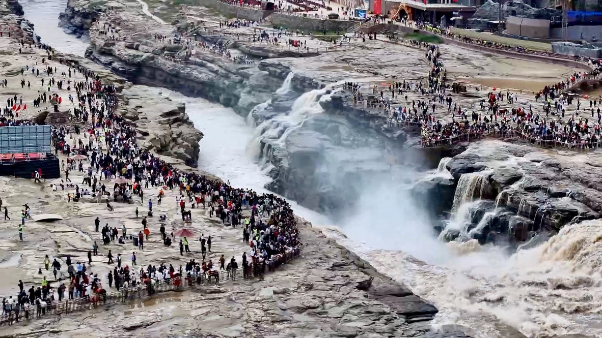 The Hukou Waterfall on the Yellow River in Jixian, Shanxi Province, saw a surge in visitors during the National Day and Mid-Autumn Festival holiday period. Daily tourist numbers peaked at nearly 30,000, as travelers flocked to admire the spectacular natural wonder in its autumn splendor. To enrich the holiday experience, the scenic area featured traditional folk shows and invited visitors to join in and sing patriotic classics.