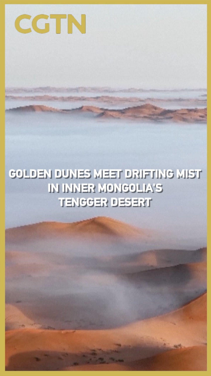 A recent cold front brought rare rainfall to Alxa League, Inner Mongolia, unveiling a fleeting spectacle in the heart of the Tengger Desert. Rolling golden dunes were softly cloaked in mist, where white fog and golden sand intertwined to form a breathtaking vision of serenity and grace.