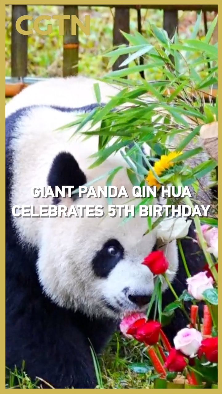 Giant panda Qin Hua celebrated its fifth birthday on Saturday at the Huayang Mountain Scenic Area in Hanzhong City, northwest China's Shaanxi Province. Despite the rain, the panda eagerly explored its specially prepared treats – including a decorative cake made of bamboo, flowers and carrots.