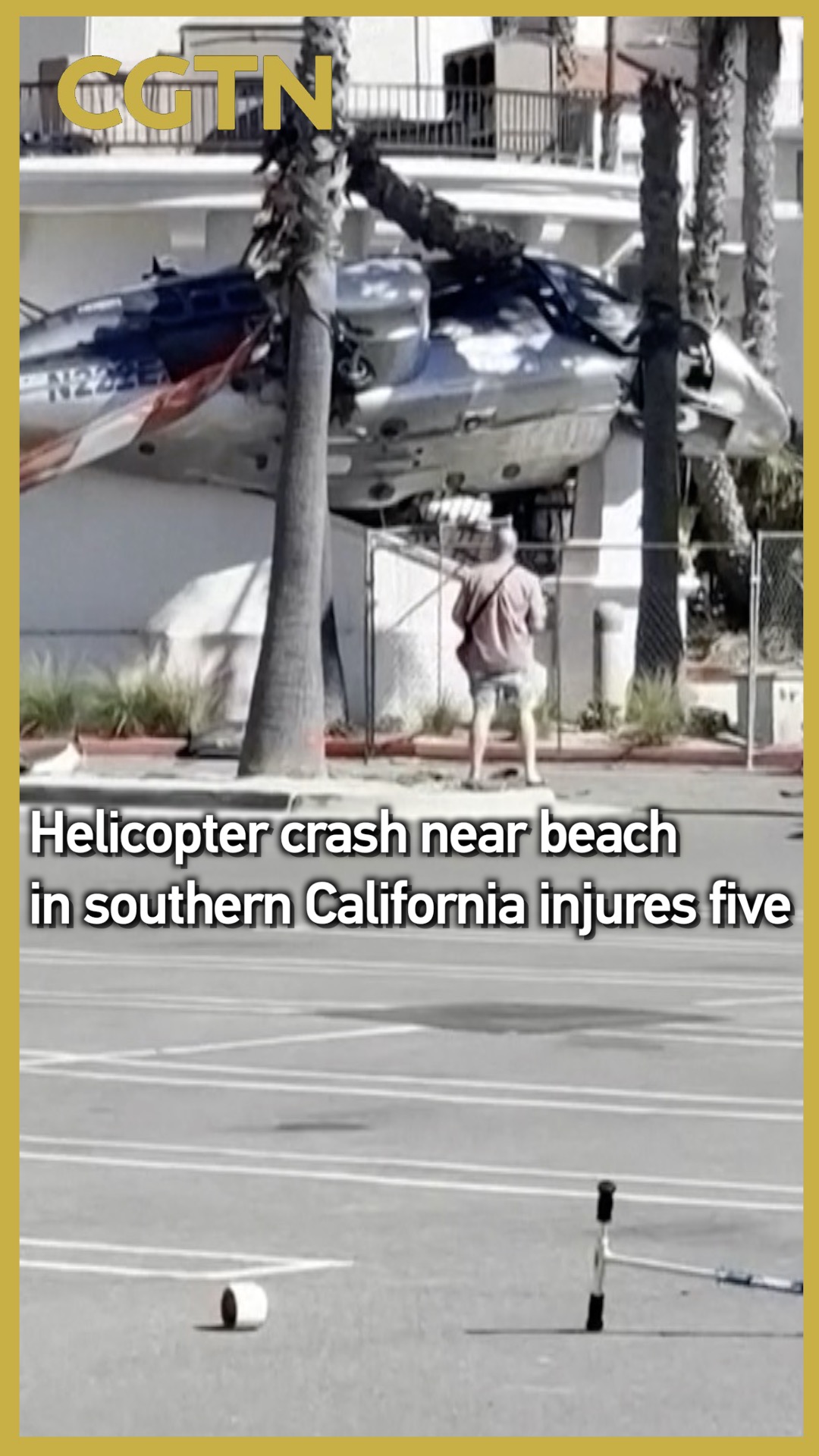 A helicopter flying over a popular beach in southern California crashed into a nearby structure on October 11. The Huntington Beach Fire Department reported that five people were hospitalized, including two who had been on board the helicopter.
