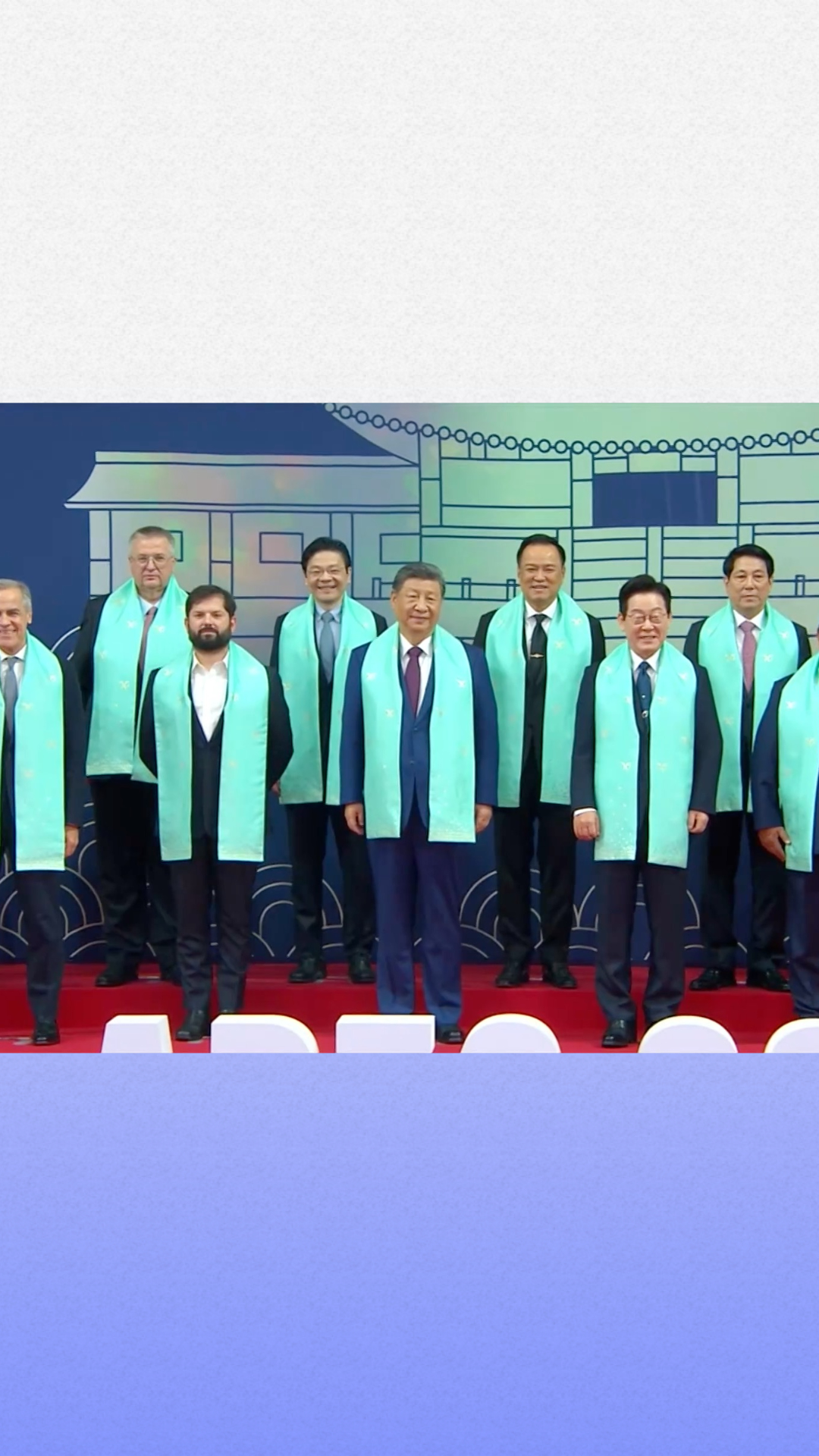 Chinese President Xi Jinping posed for a group photo with leaders attending the 32nd Asia-Pacific Economic Cooperation (APEC) Economic Leaders' Meeting on Saturday in Gyeongju, the Republic of Korea.