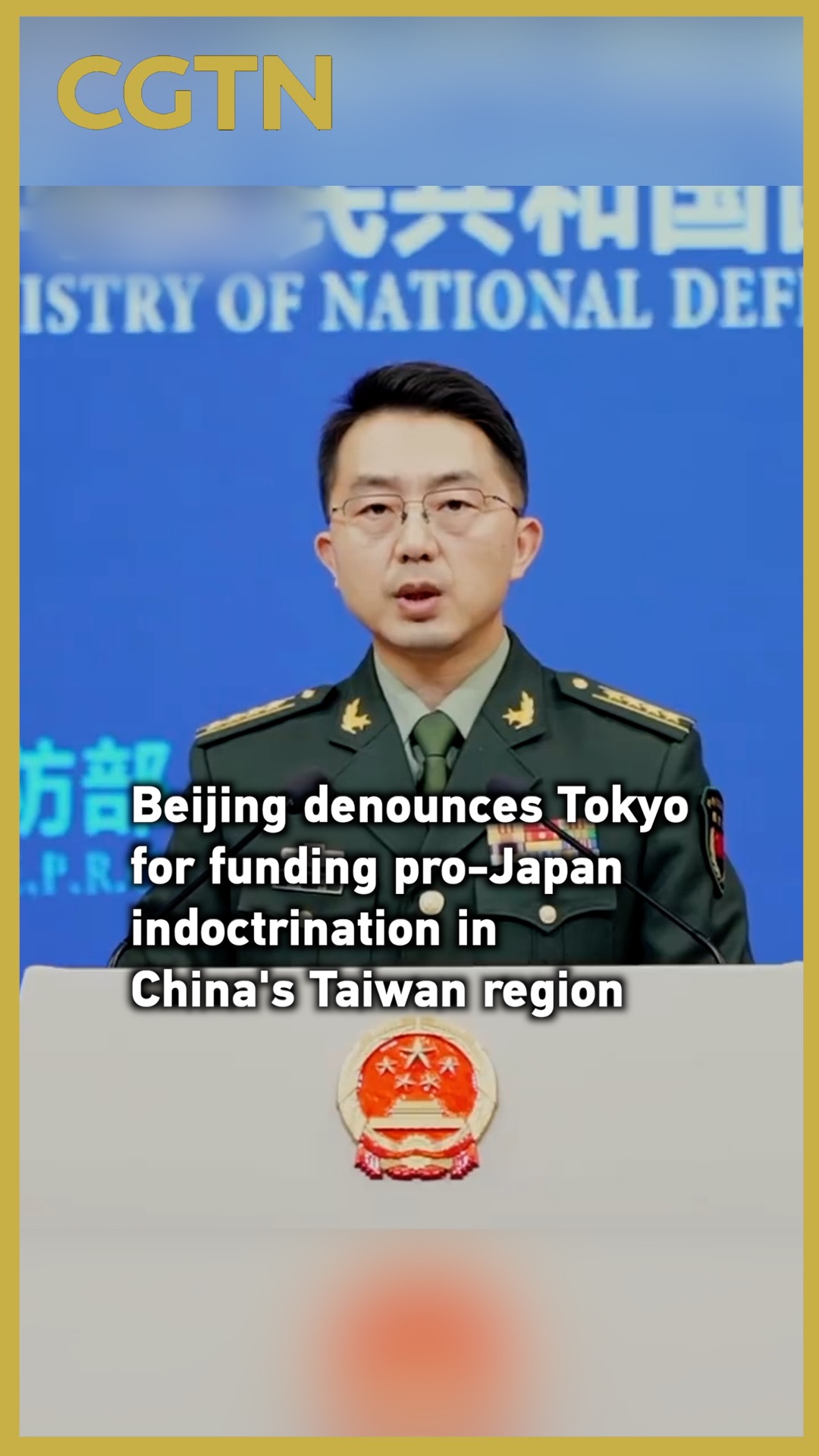 China's Defense Ministry on Thursday condemned Japan for investing substantial funds to cultivate submissive attitudes toward Japan in China's Taiwan region, calling it a continuation of historical efforts to manipulate identity narratives in the region.