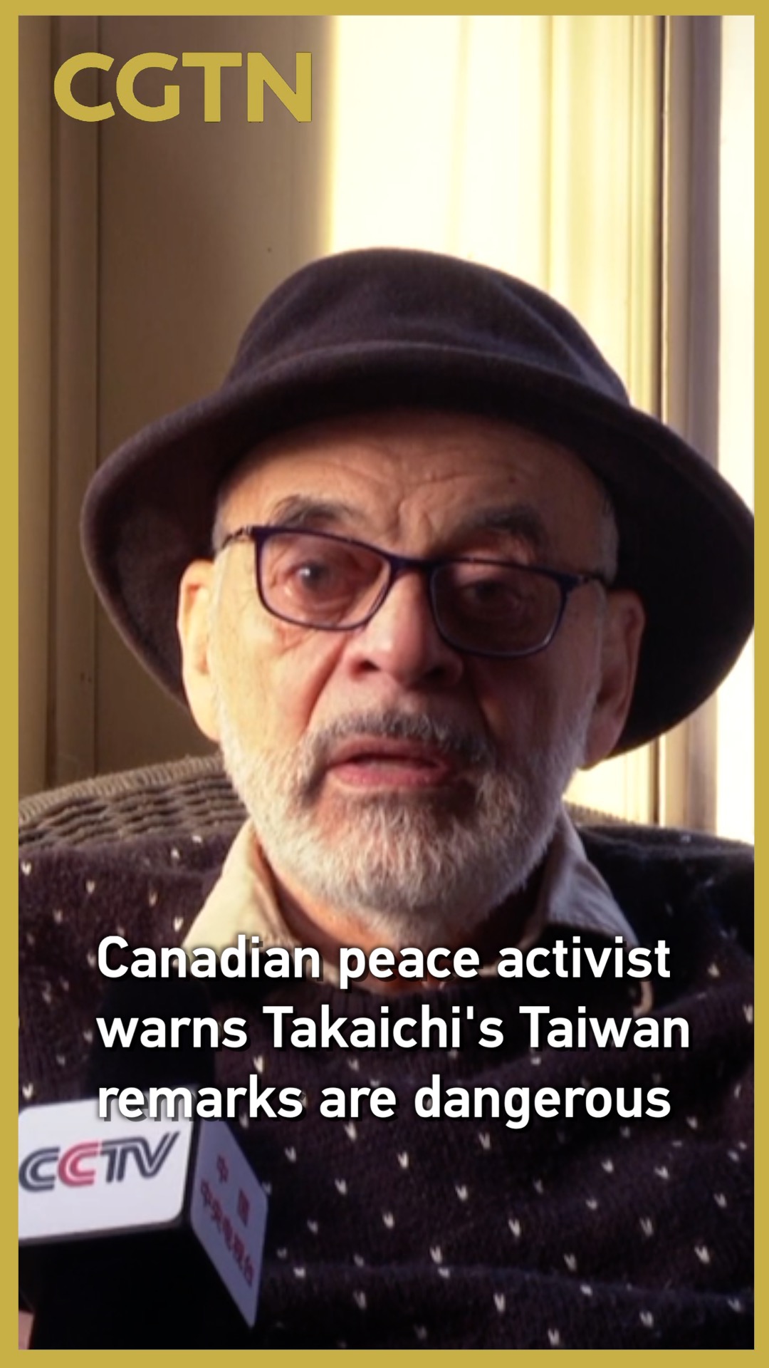 Ken Stone, president of the Canadian anti-war group Hamilton Coalition to Stop the War, in an interview with CMG said that Japanese Prime Minister Sanae Takaichi's erroneous remarks on Taiwan are steeped in war rhetoric, calling them dangerous.