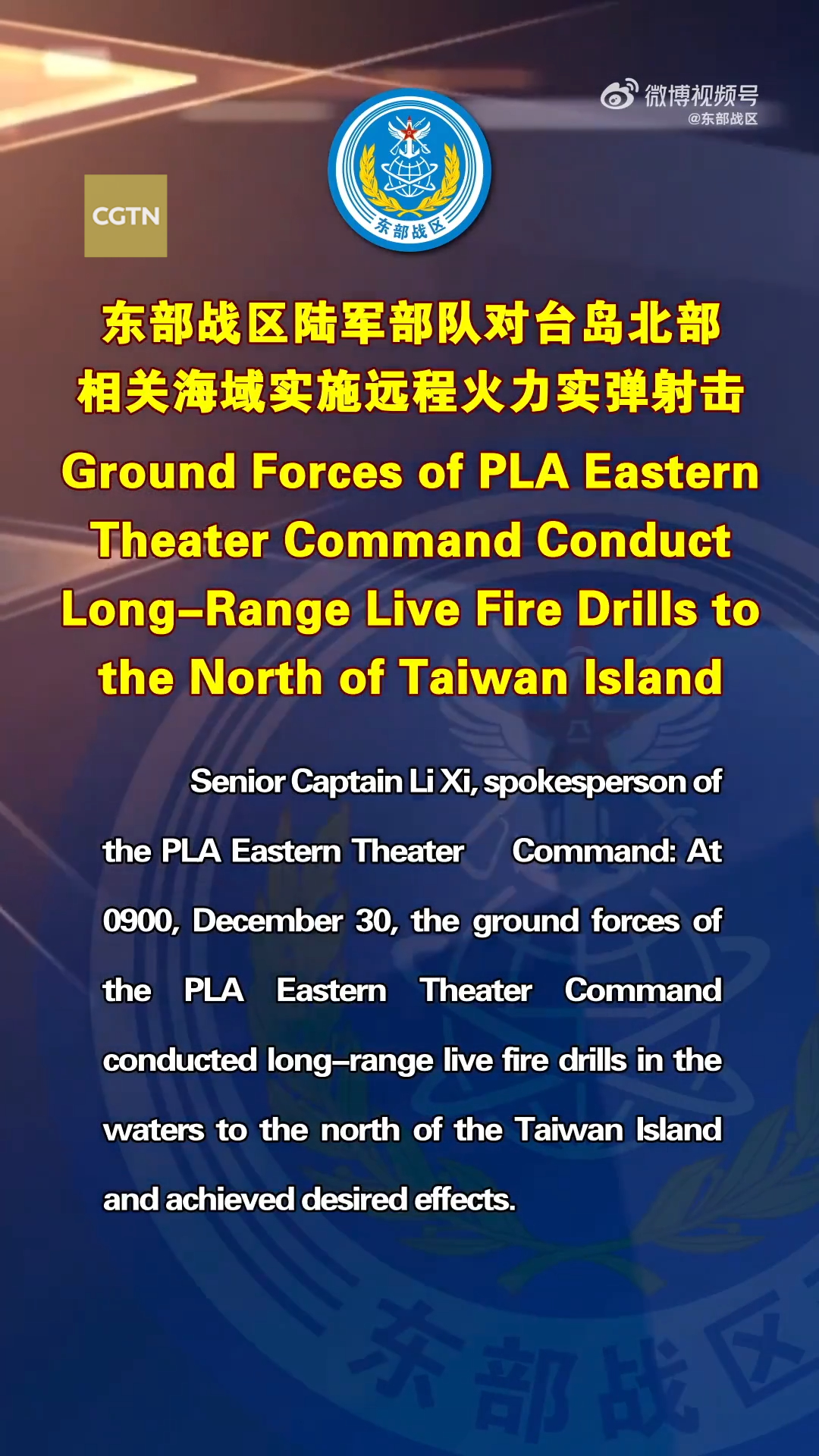 The ground forces of the theater command carried out long-range live-fire drills in the waters to the north and south of Taiwan Island.