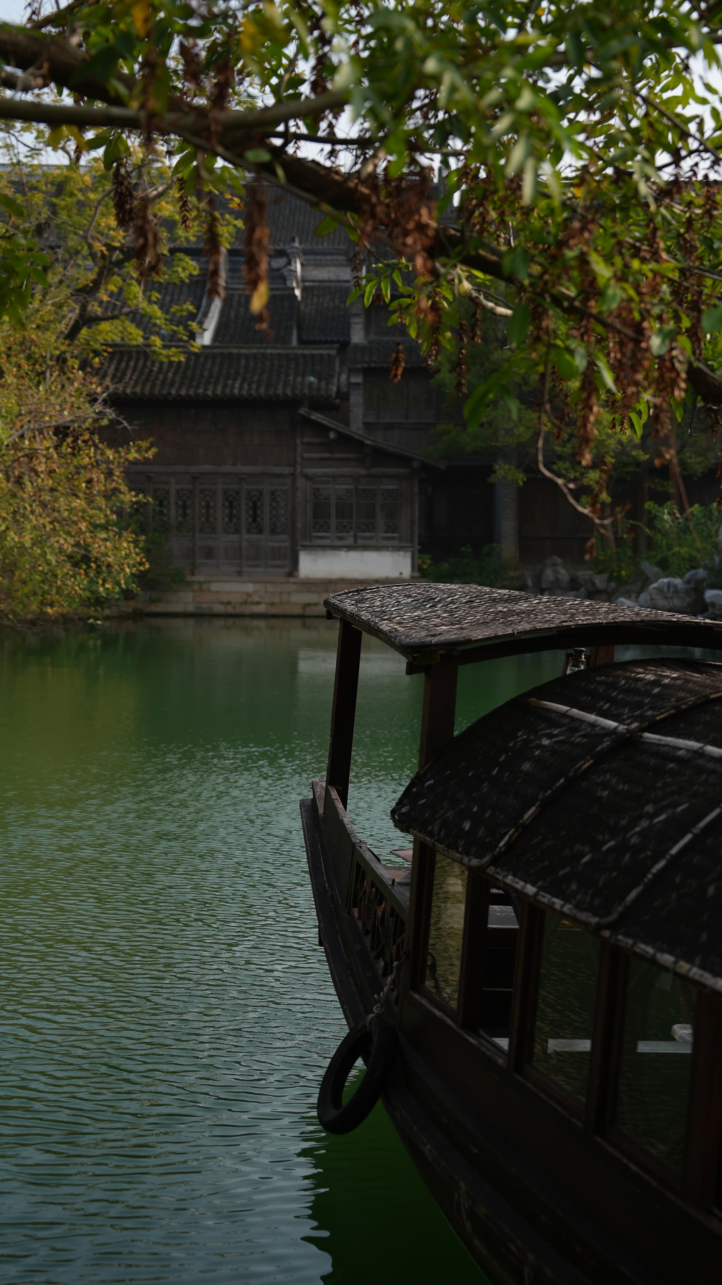 In the soft morning mist, the stone bridges look like they belong in a delicate Chinese ink painting. Boats glide over the bright green water, gently breaking the reflections of the white buildings. But like magic, the images slowly reform on the water's surface, in a beautiful, timeless dance of light and movement.