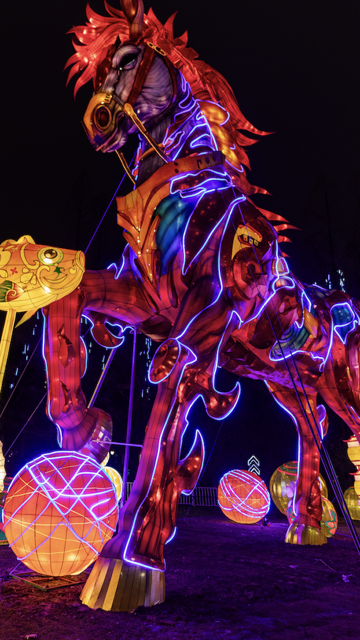 Standing on the park's central lawn, the centerpiece of the fair is a giant horse-shaped lantern. Stretching over 14 meters in length and rising 13 meters high, it has quickly become the visual highlight for visitors.