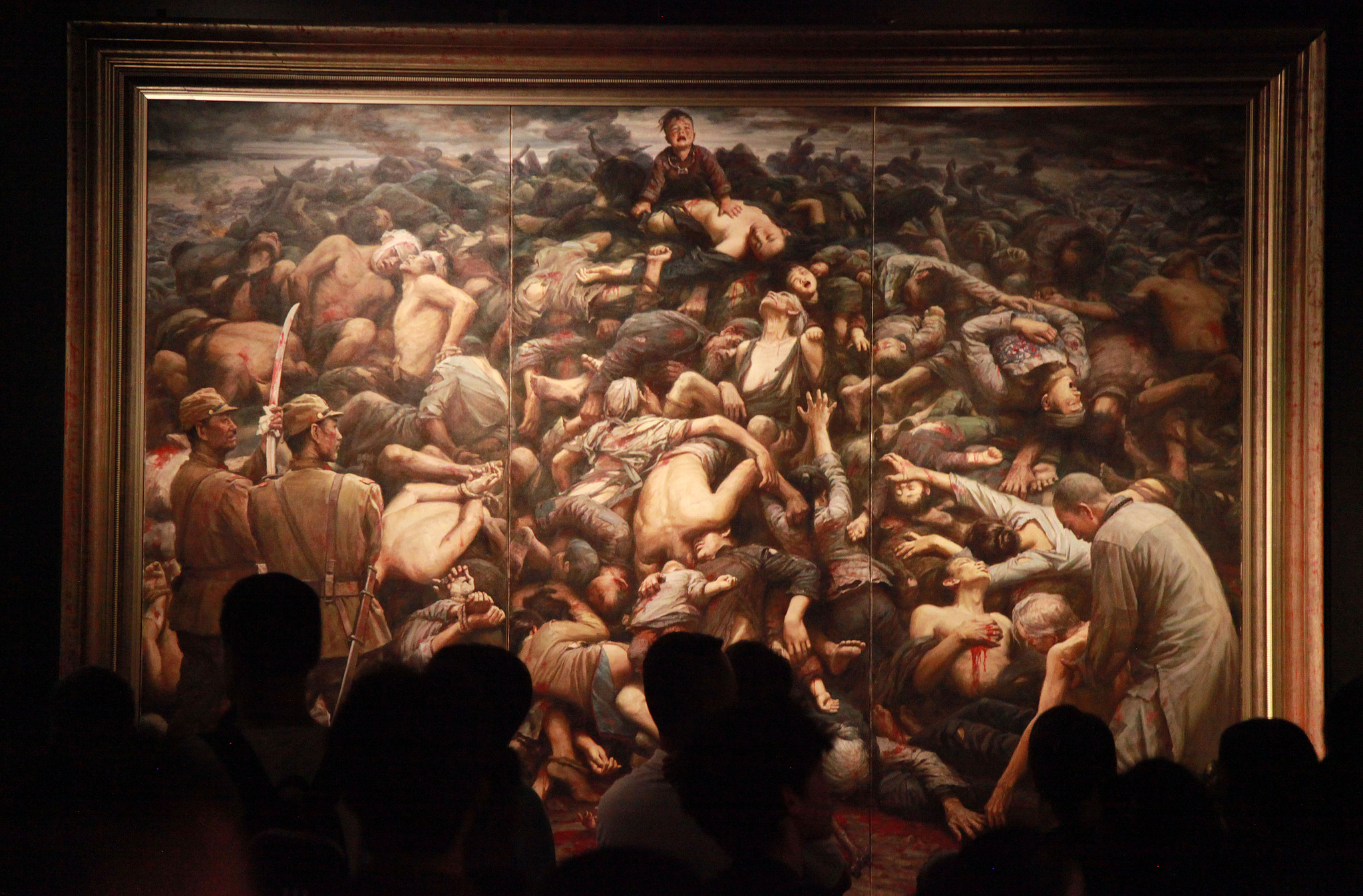 "Slaughter, Life, and Buddha," a renowned oil painting by artist Li Zijian, created to commemorate the 1937 Nanjing Massacre, is on display at the Memorial Hall of the Victims of the Nanjing Massacre in Nanjing, Jiangsu Province, east China, August 13, 2025. /CFP