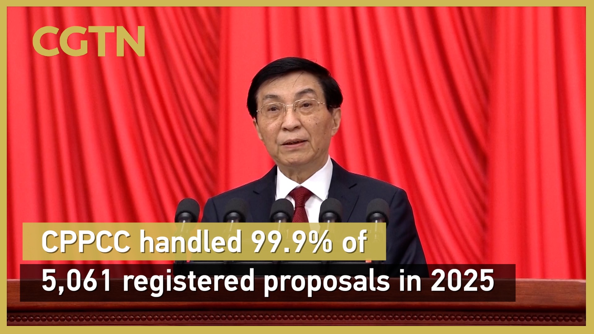 In 2025, the Chinese People's Political Consultative Conference (CPPCC) received 5,992 proposals, registered 5,061 and achieved a handling rate of 99.9%, said Wang Huning, chairman of the 14th CPPCC National Committee, at the opening meeting of the fourth session of the 14th CPPCC National Committee on Wednesday.