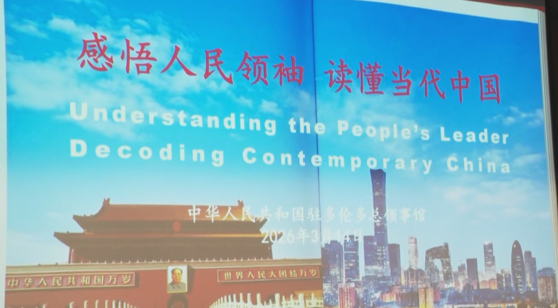 The Chinese Consulate General in Toronto hosted an event at the University of Toronto themed "Understanding the People's Leader and Contemporary China." Consul General Luo Weidong elaborated on Chinese President Xi Jinping's ideology and commitment to the people. He also highlighted that China provides solutions to counter challenges as unilateralism rise. China is willing to work with Canada to implement the important consensus reached by the leaders of the two countries.