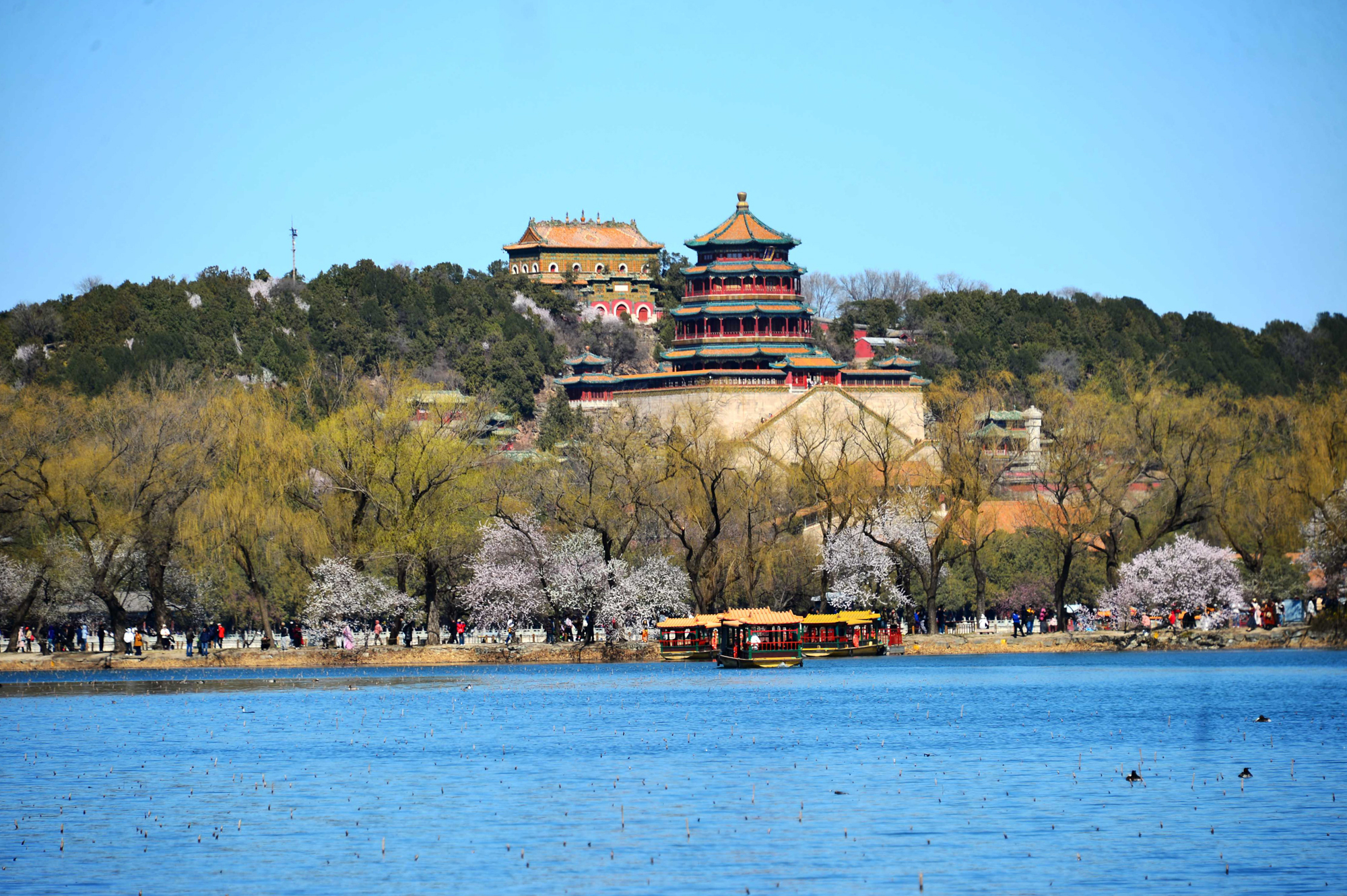 Spring has sprung in Beijing and pink blossoms have begun lining the city alongside a profusion of seasonal flowers and newly verdant weeping willows, as captured in this image taken on March 18. Can you identify this iconic destination in the Chinese capital?