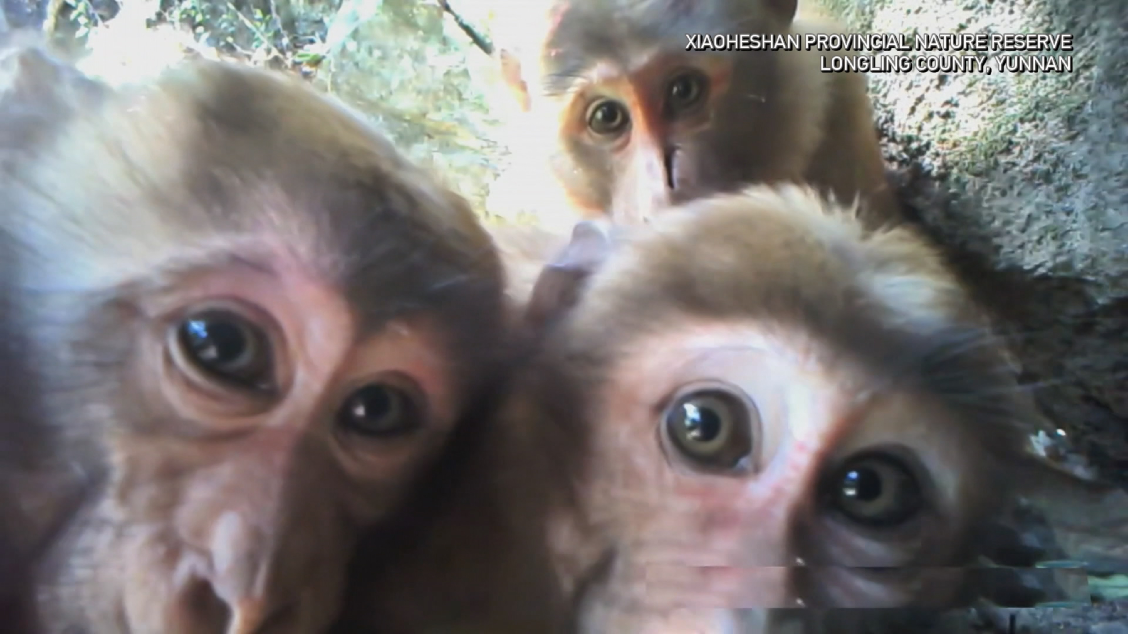 Wild macaques are roaming and foraging in the Xiaoheshan Provincial Nature Reserve in Longling County, southwest China's Yunnan Province. The stump-tailed macaques are under second-class state protection in China. The footage offers valuable insight into their natural behavior and highlights biodiversity conservation efforts.