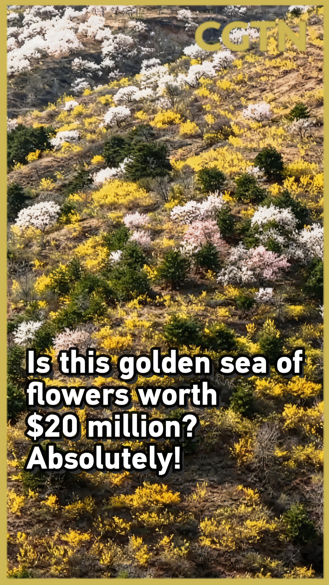 A golden sea has taken over north China and it's worth $20 million! 100,000 hectares of forsythia are in full bloom, turning mountains into gold. These flowers aren't just beautiful – they're fueling a booming local economy.
