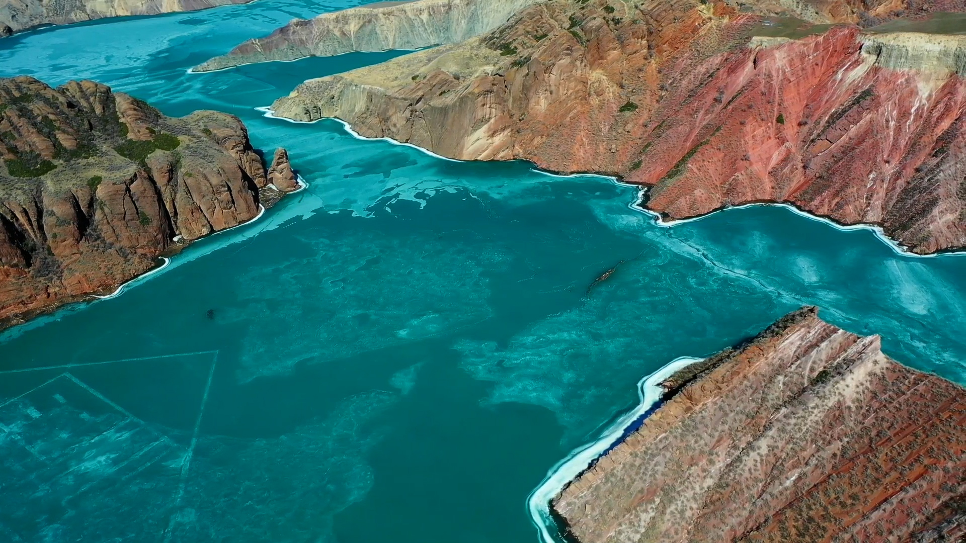 In spring, Kensiwate Lake in Xinjiang's Manas County reveals soft blues and blue-greens. Drone footage shows it shining like turquoise jade among the Tianshan Mountains. Visitors can take a cable car or a 268-meter-high glass plank road to enjoy the peaceful spring views.