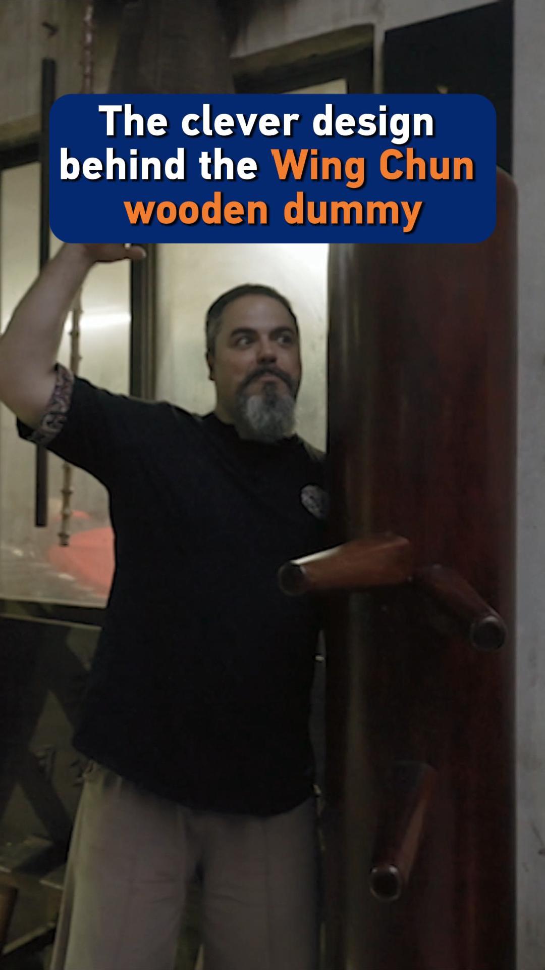 The wooden dummy is one of Wing Chun's key training tools. It simulates a human opponent and helps practitioners improve force control, footwork, striking angles and body coordination. Every aspect of its design specifically mirrors the close-range fighting style of Wing Chun, and helps develop the precise, efficient and purposeful movements required for combat.