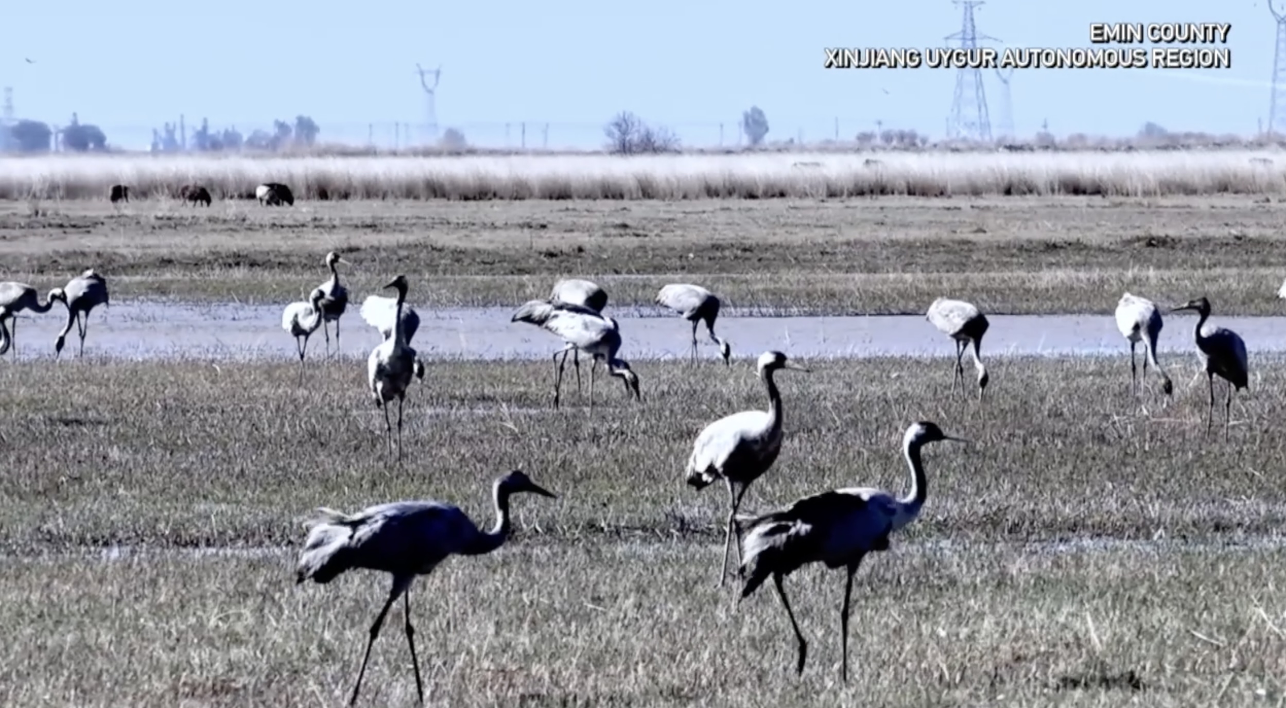 A spectacular wave of migrating gray cranes has arrived in Emin County, northwest China's Xinjiang Uygur Autonomous Region. Thousands of birds fill the spring sky, soaring in graceful arcs, foraging, and resting in the warm sunshine. A nationally protected species, the gray crane makes its annual stopover in northern Xinjiang during migration. The breathtaking sight reflects the region's improving ecosystem, with healthier habitats turning the area into a vital sanctuary for migratory birds.