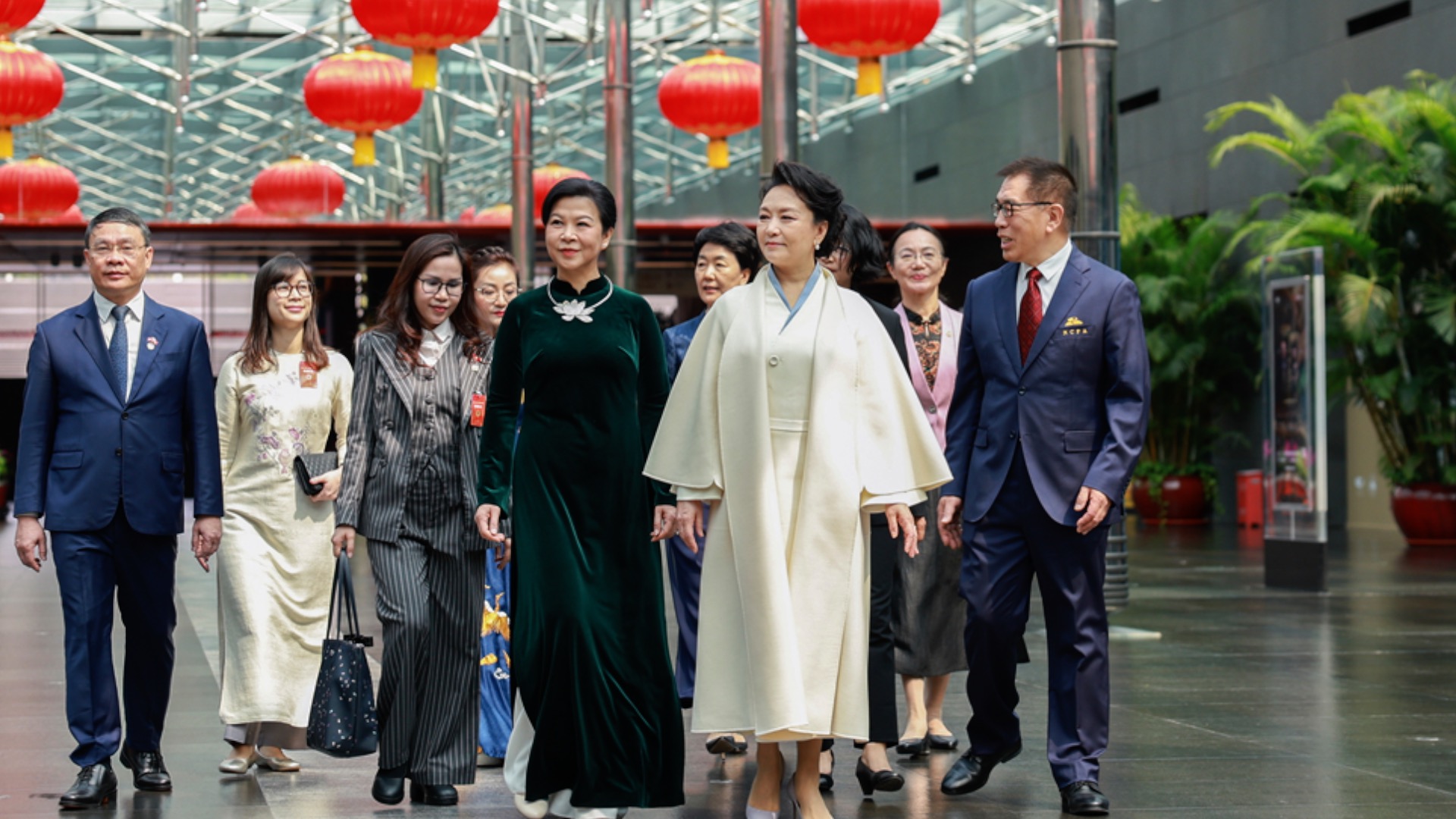 Peng Liyuan, wife of General Secretary of the Communist Party of China Central Committee and Chinese President Xi Jinping, and Ngo Phuong Ly, wife of General Secretary of the Communist Party of Vietnam Central Committee and Vietnamese President To Lam, visited China's National Center for the Performing Arts (NCPA) in Beijing on Wednesday.