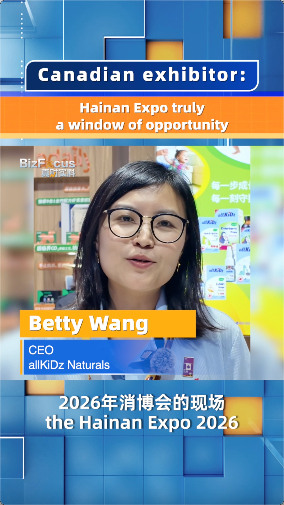 The Hainan Expo is truly a "window of opportunity" to bring global products into the Chinese market, showcase quality goods to global buyers, and benefit from the free trade port's tax advantages, said Betty Wang, CEO of allKiDz Naturals, a Canadian exhibitor, in an interview with CGTN at the Hainan Expo 2026.